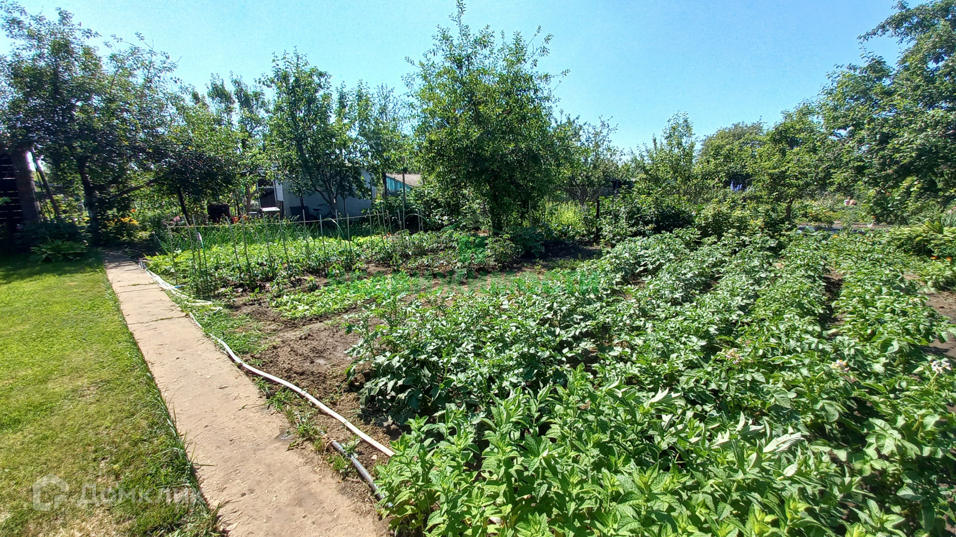 Ухоженный участок с насаждениями, много плодовых и ягодных деревьев (груша, 3 яблони, 2 вишни), кустарников (смородина, крыжовник, малина, ежевика, виноград). Высажены помидоры, огурцы, перец, морковь, свекла, капуста, картошка - весь урожай останется.