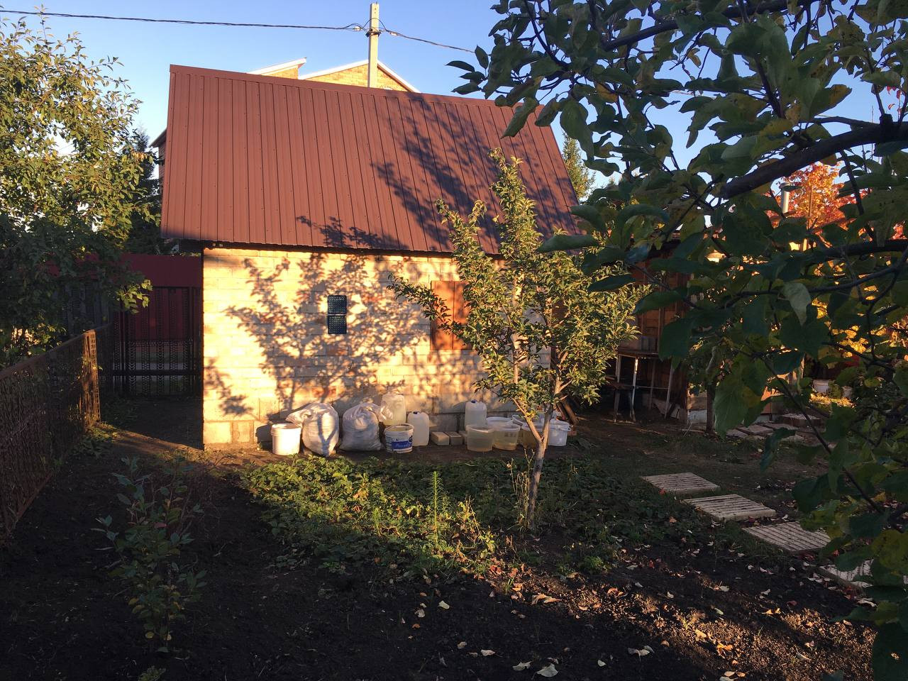 -  Большой сад (груши, яблоки, сливы, вишни, черешня, виноград, ирга, черноплодная рябина, жимолость, шелковица, клубника, смородина, крыжовник, малина, облепиха, калина, орех фундук), всё плодоносит.