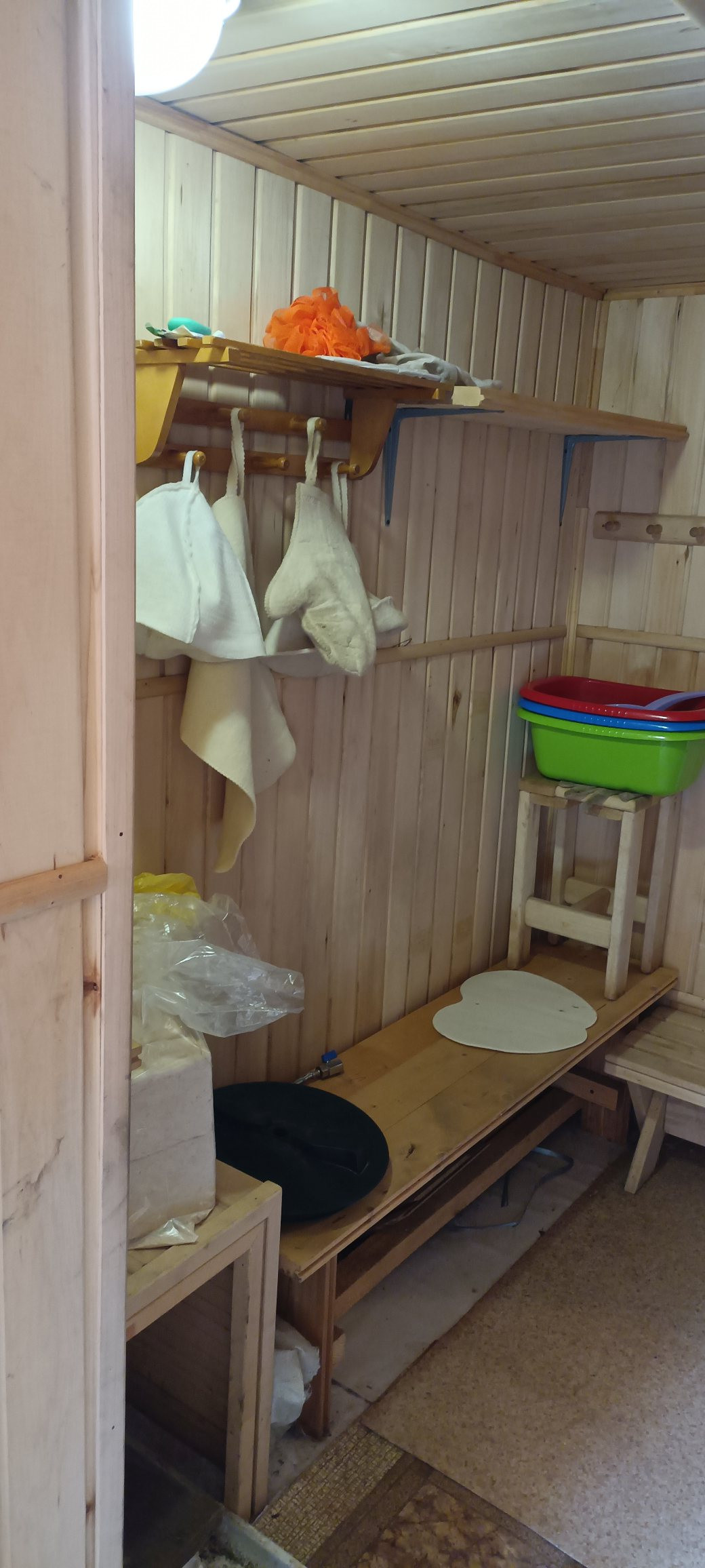 Баня, площадка под каркасный бассейн, хоз. постройка (навес, летний душ, 2 туалета - деревенский и с унитазом), гараж-кладовка, 2 парковочных места.