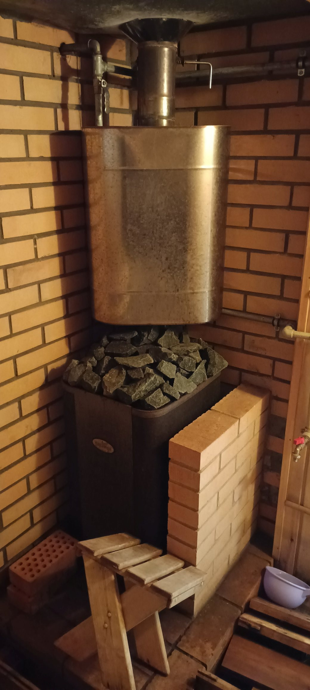 На кухне есть кирпичная печь для приготовления пищи.