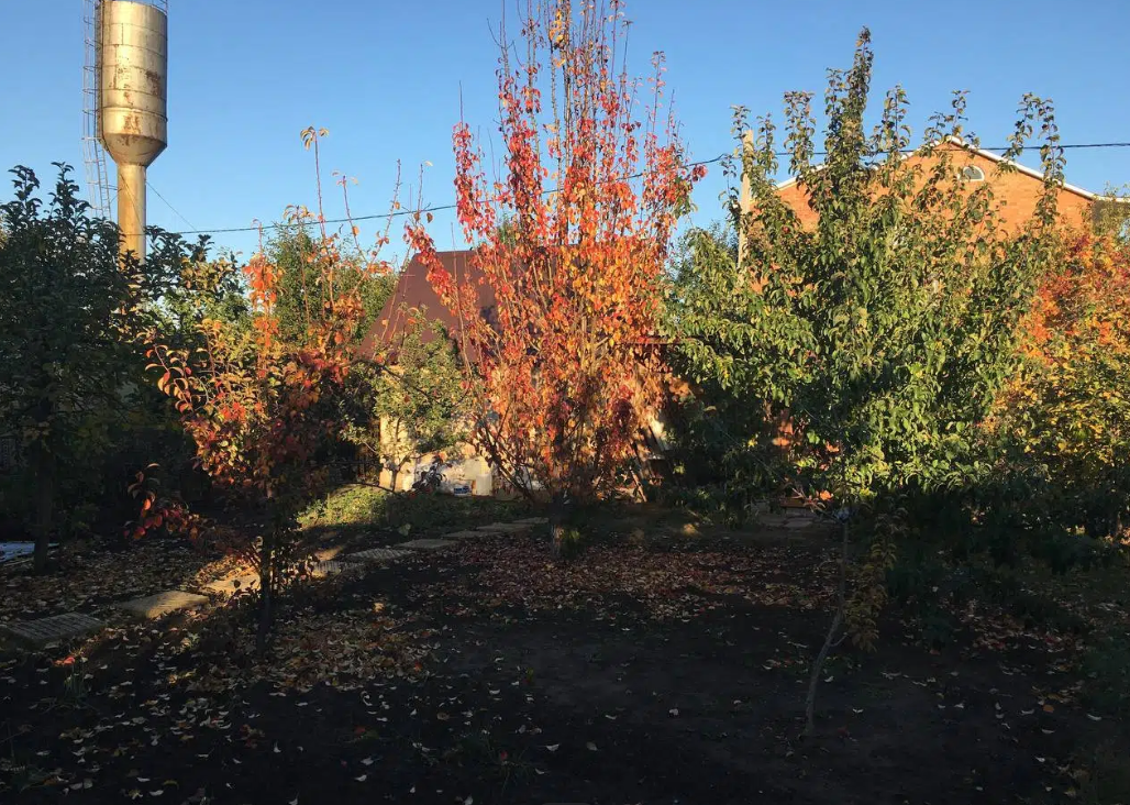 - Большой сад (груши, яблоки, сливы, вишни, черешня, виноград, ирга, черноплодная рябина, жимолость, шелковица, клубника, смородина, крыжовник, малина, облепиха, калина, орех фундук), всё плодоносит.