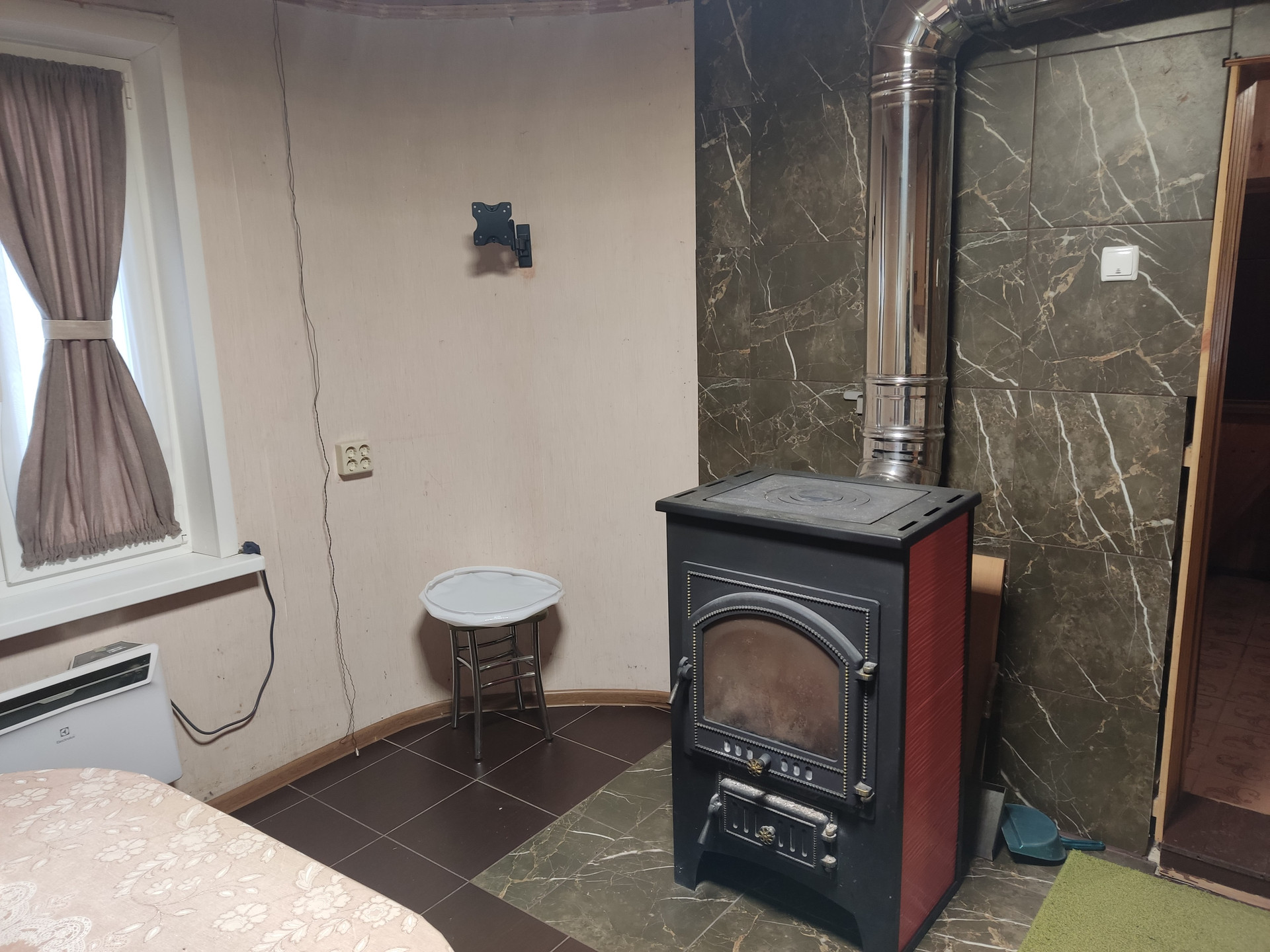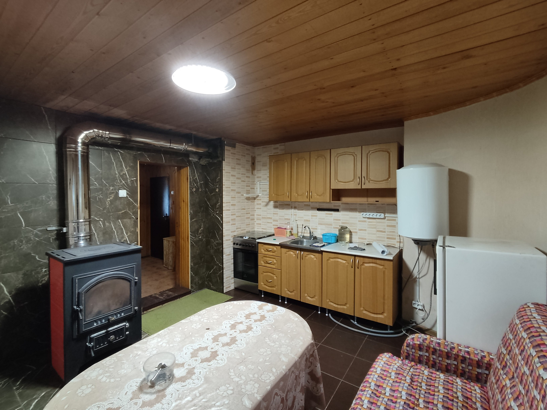 В Доме 5 комнат, гараж, вода - своя скважина, фильтры, выгребная яма, отопление - печь, конвекторы;