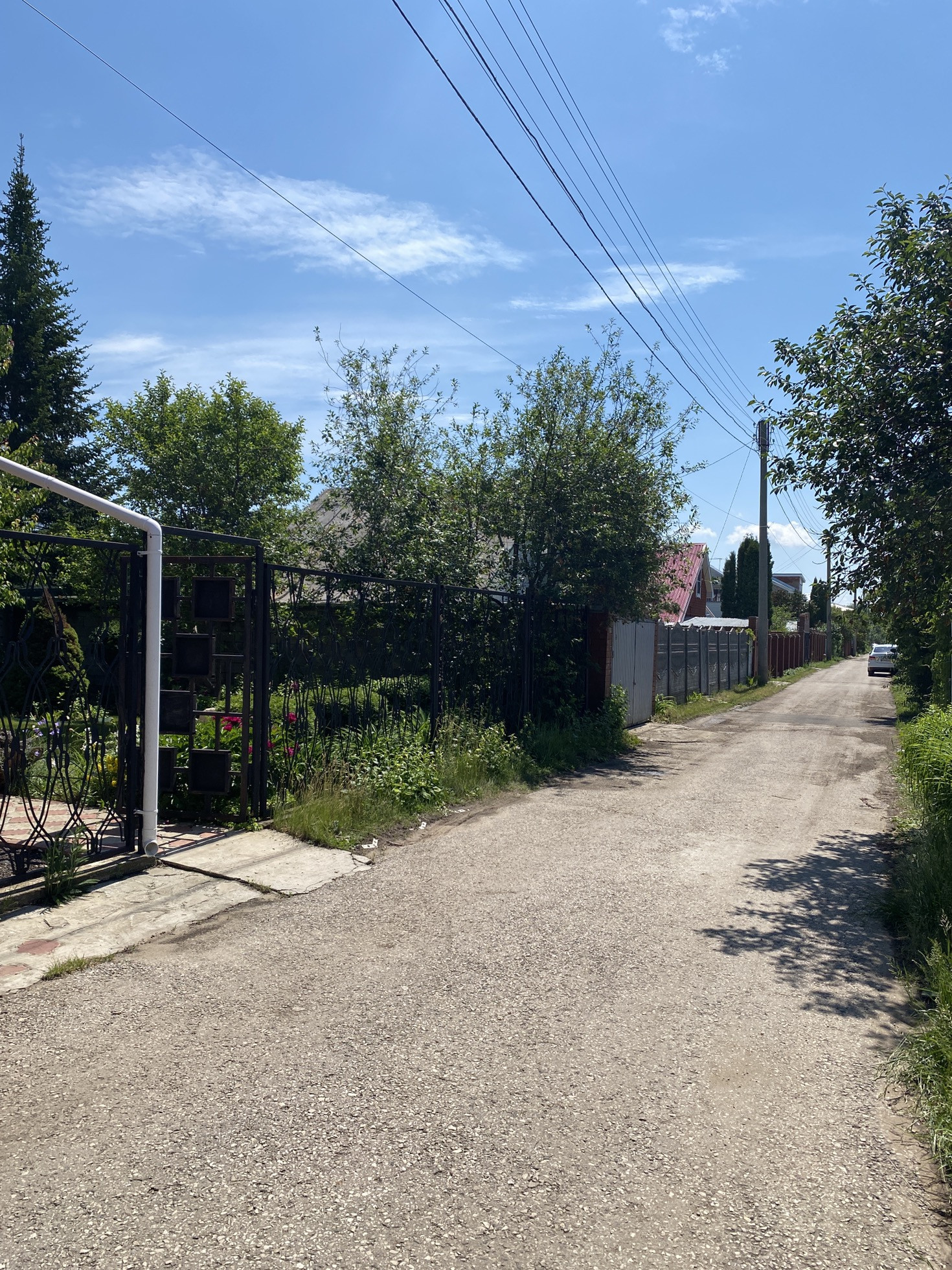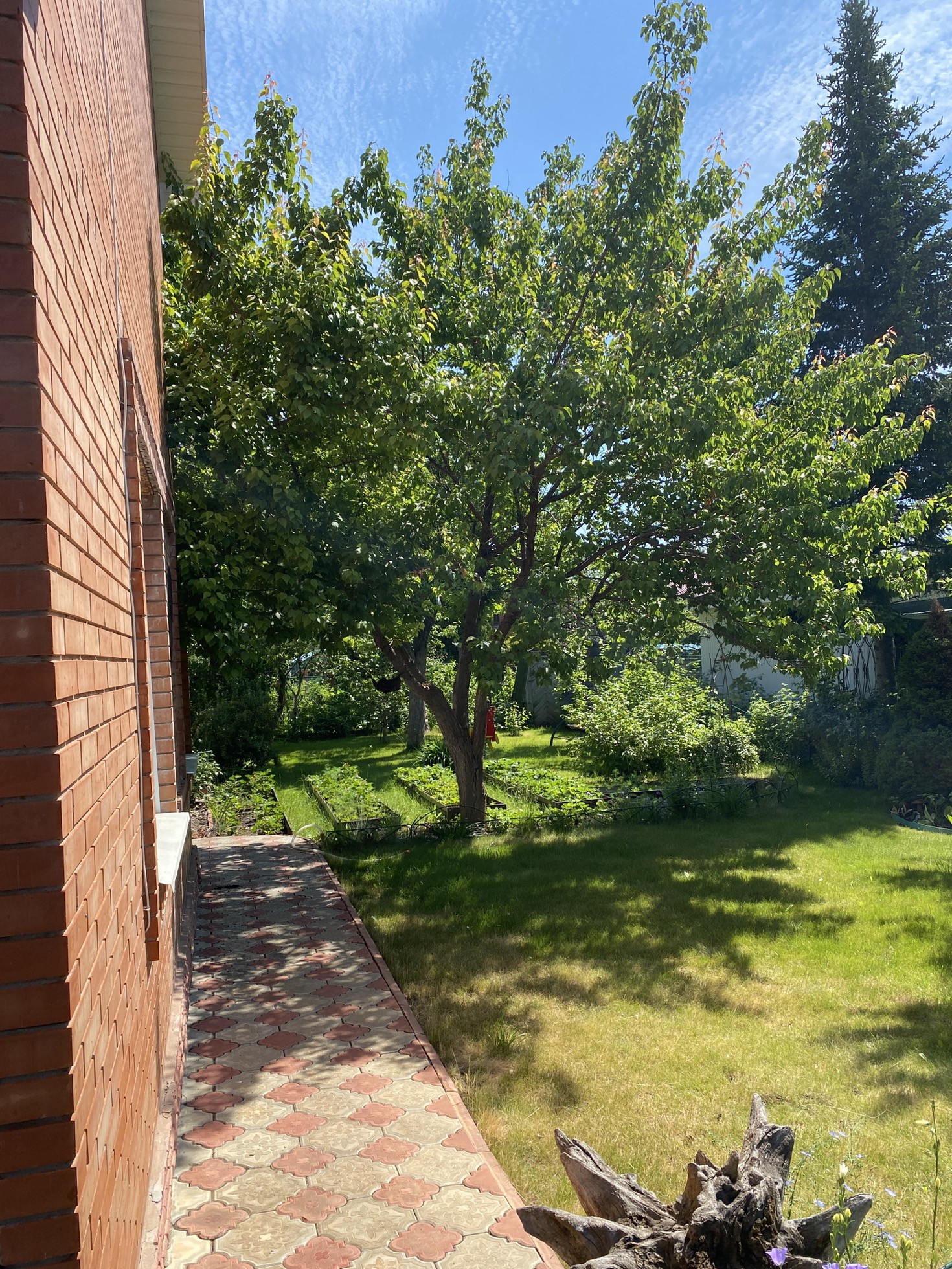 На участке стоит таблица 6*3 , насаждения ( яблоня, вишня, малина, смородина , крыжовник , клубника , туи , розы , цветы ).