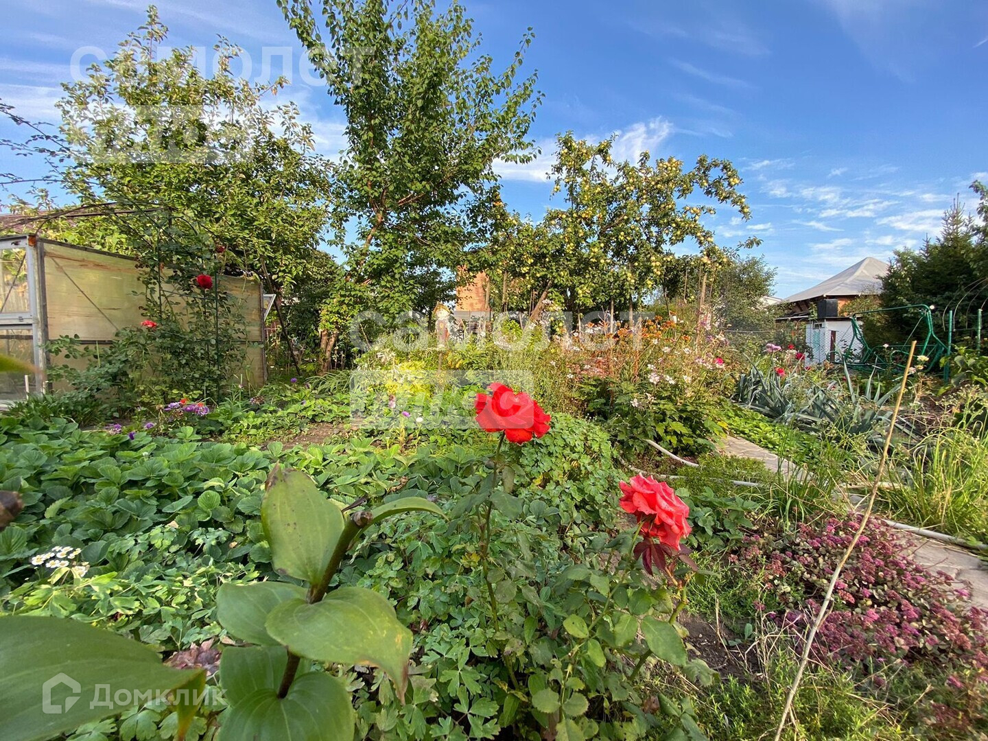 Ухоженный участок с плодородной землей, насаждения: Малина красная и черная, яблони, айва, розы.