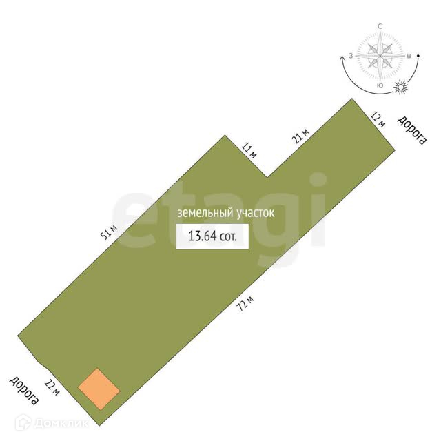 Площадь участка 13.6 сот.