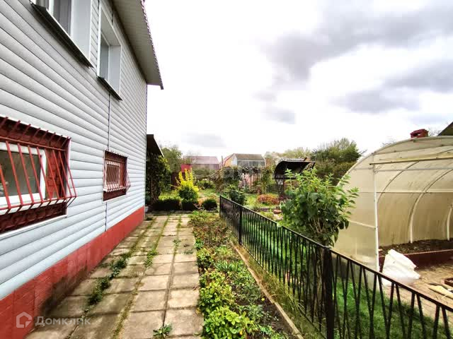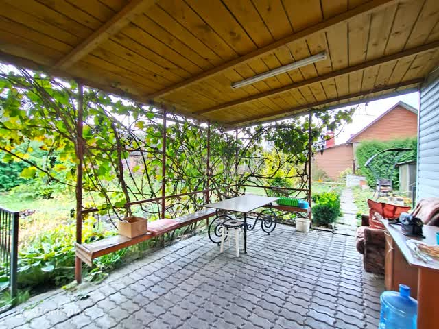 Дом расположен в углу участка. Так же на участке имеется душ,туалет, 2 террасы и теплица. Участок разработан. На участке растёт виноград, розы, цветник и место для посадки овощей. Дорожки выложены из плитки. Так же на улице имеется электрическая плита, мангал , 2 мойки.