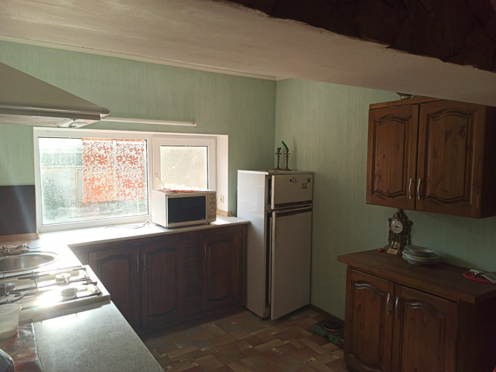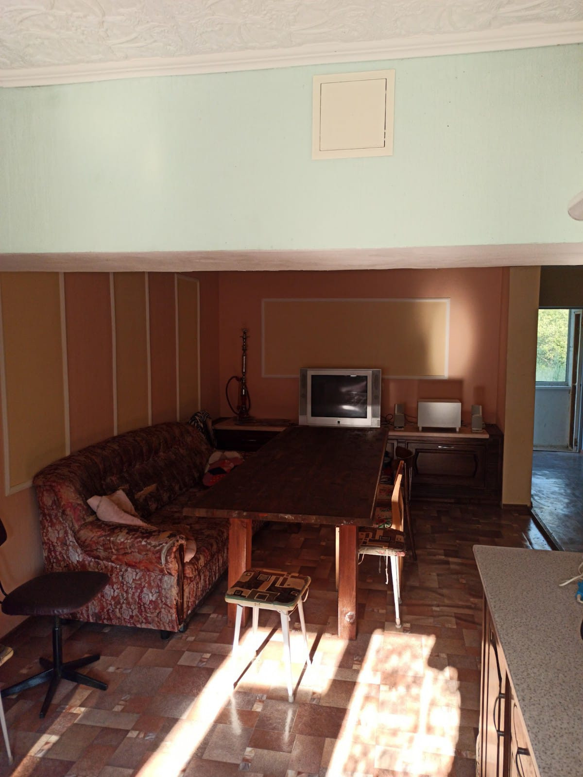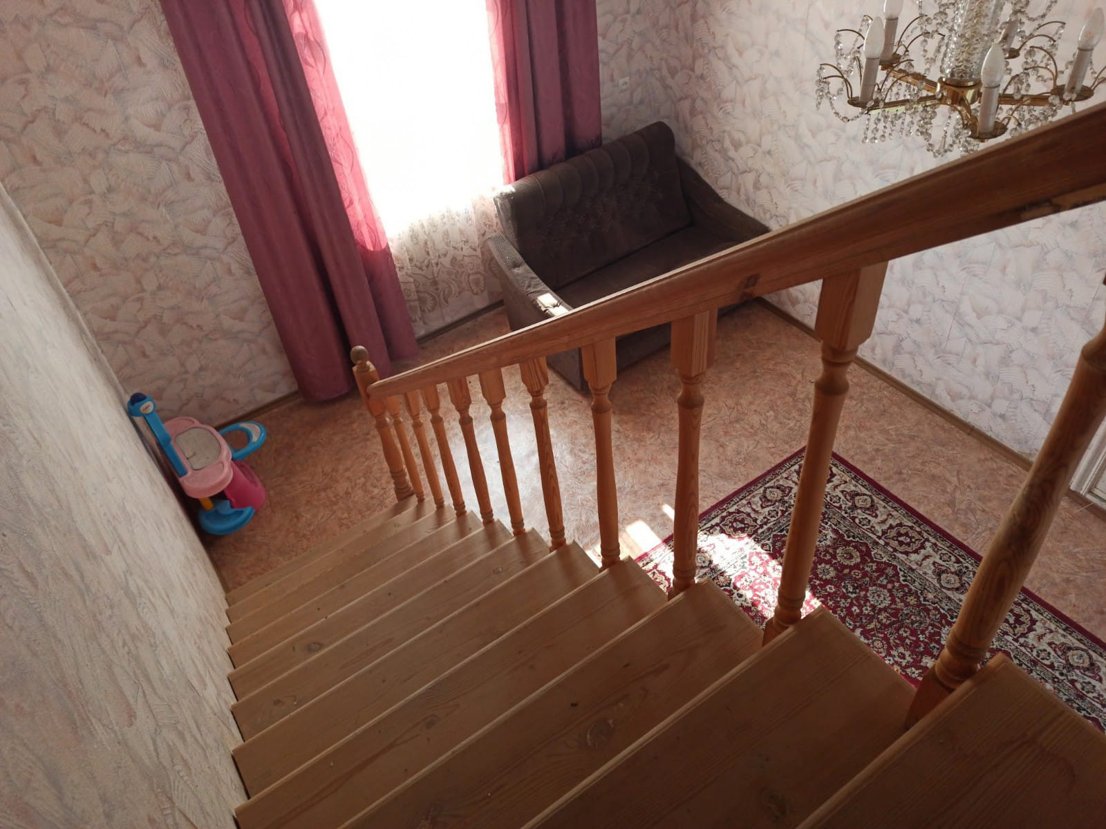 В доме несколько комнат, большая гостинная и зона отдыха, бильярдный стол, диван, встроенная кухонная мебель. Строительств велось "для себя".
