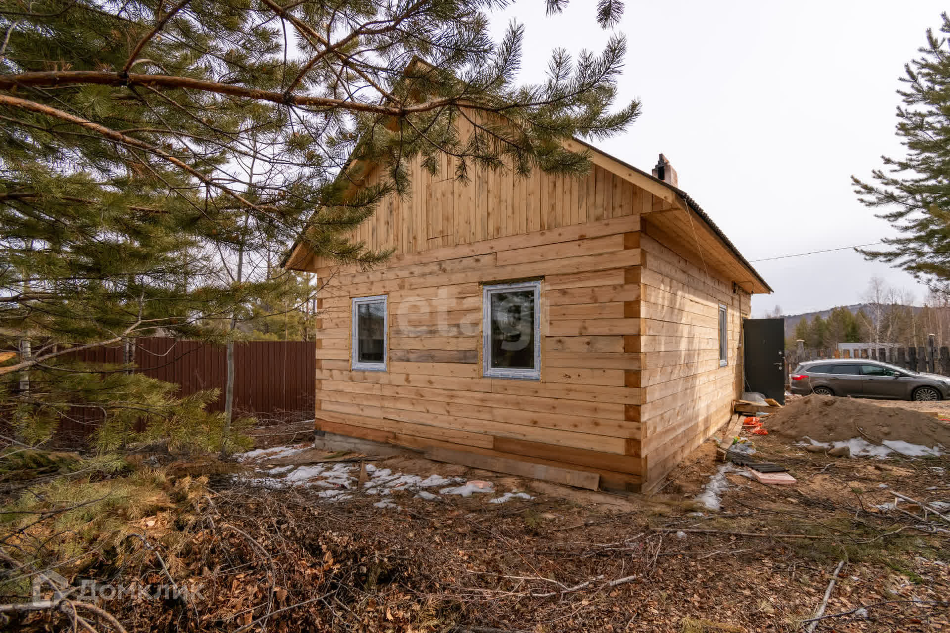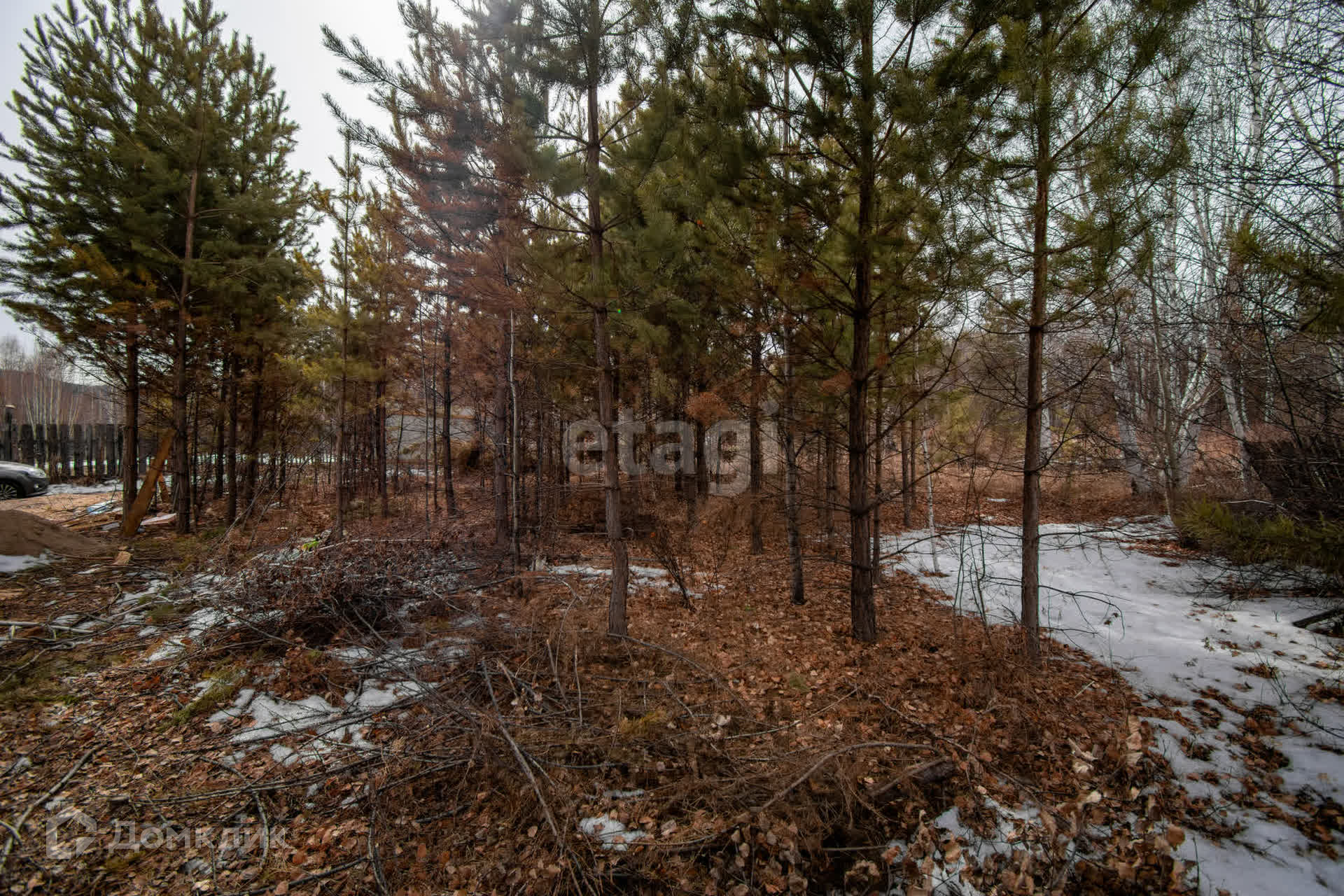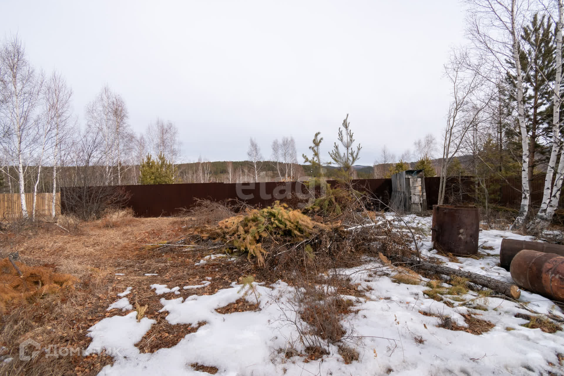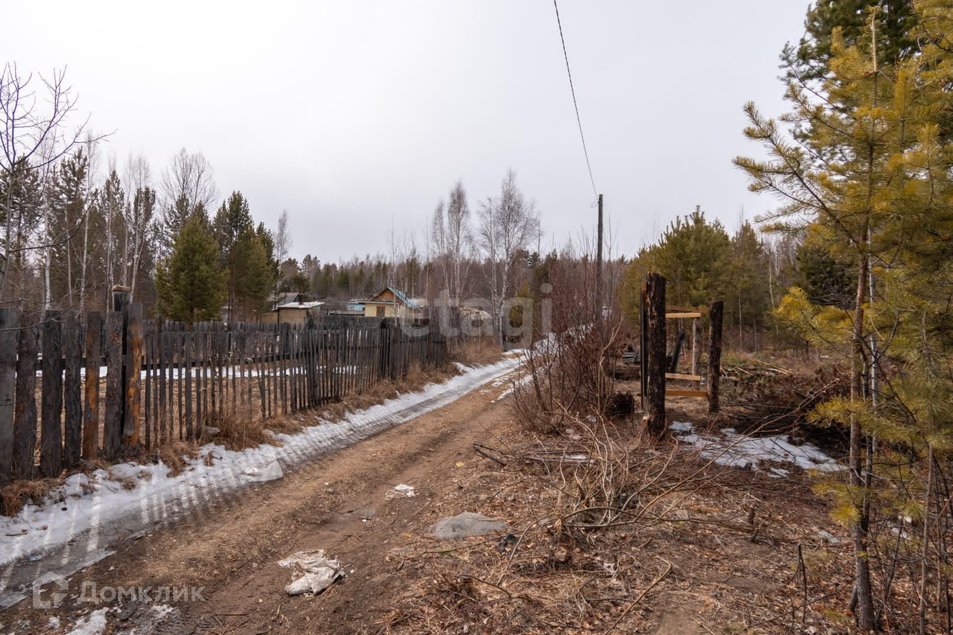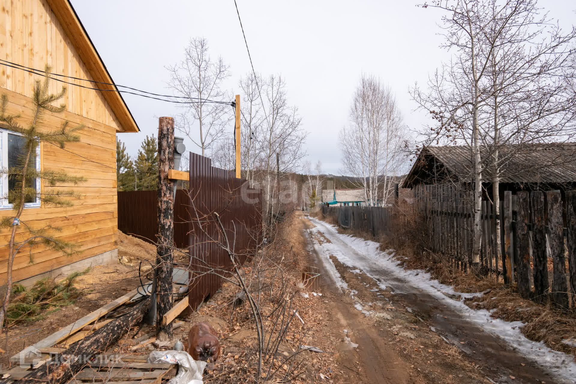Участок не разработан, частично огорожен забором из профлиста, в ближайшее время будет огорожен полностью. Подъезд к дому - грунтовая дорога.