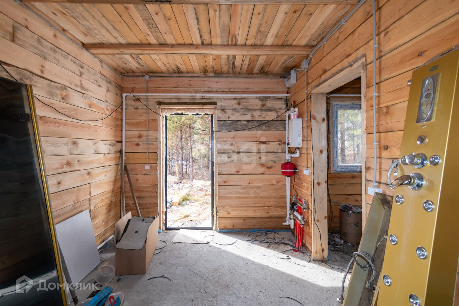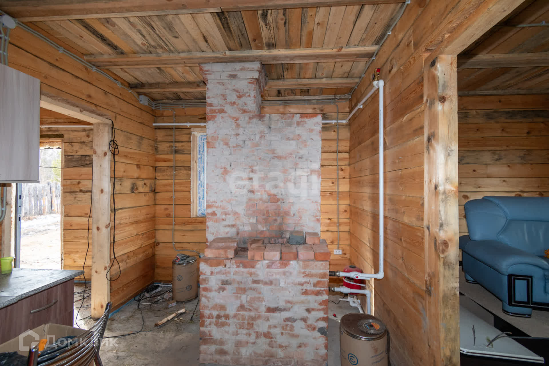 Дом построен из 18 бруса в 2023 году. Коммуникации: к дому подведено электричество, отопление - печное и эл. котел, водоснабжение - в процессе устройства (будет скважина), водоотведение - септик. Произведено устройство системы теплый пол. Так же покупателю остается сантехника, кухонный гарнитур, мебель.