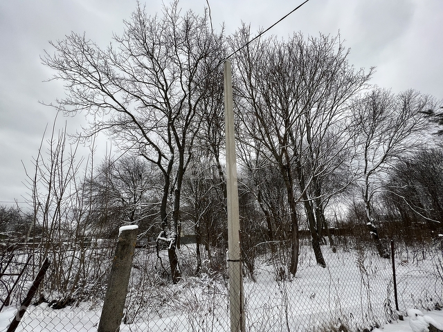 Участок ровный, озеленен. Растут плодоносные деревья – яблони, вишня, слива, много ягодных кустарников. Растут сосны.