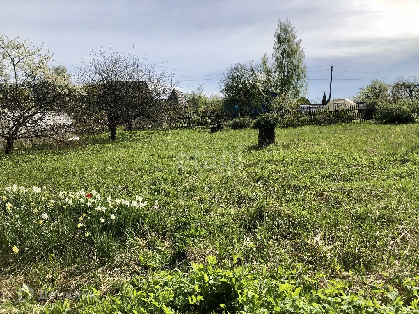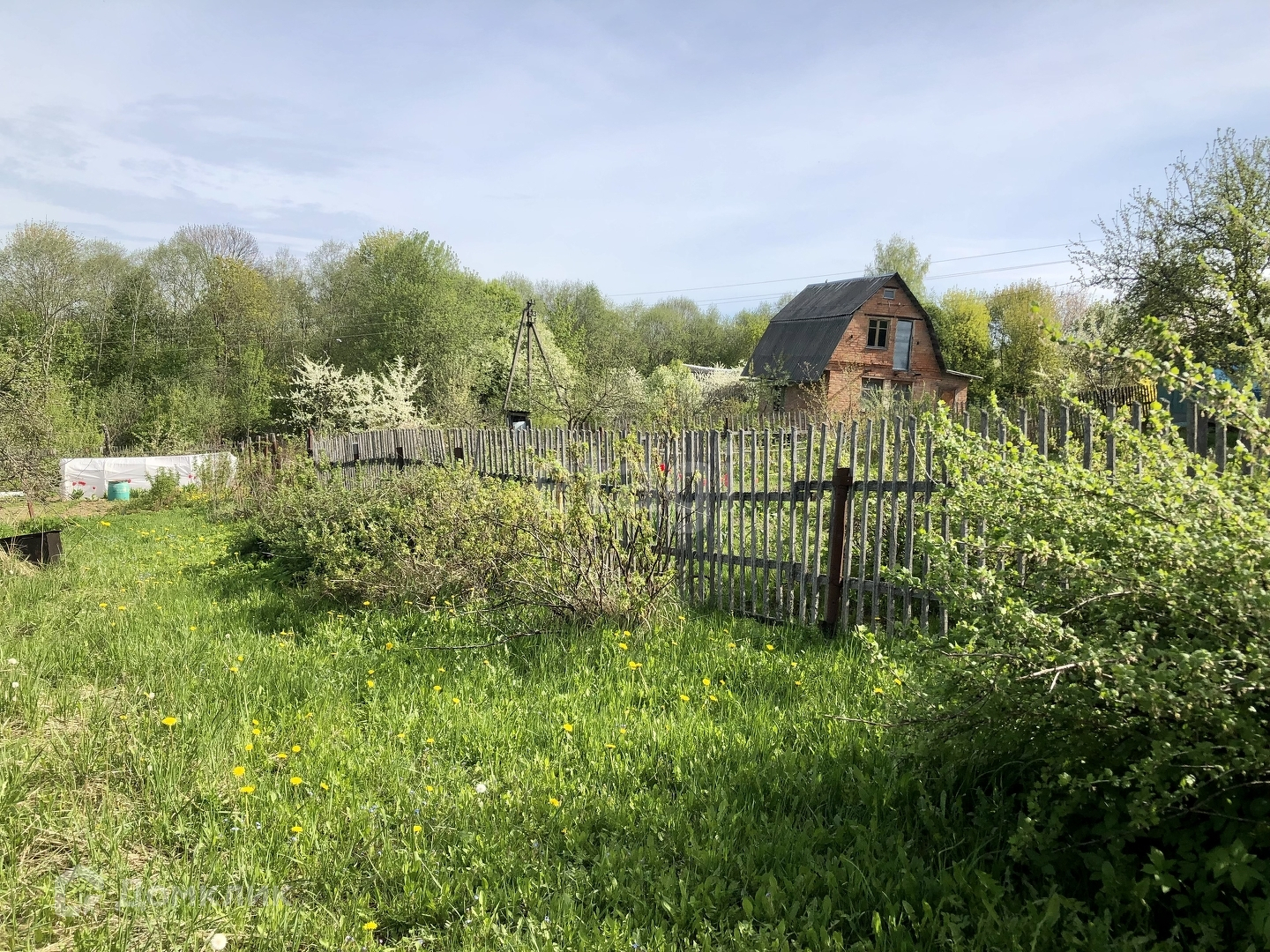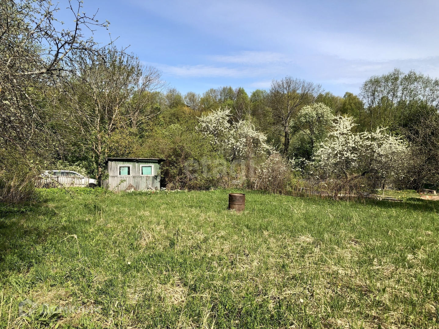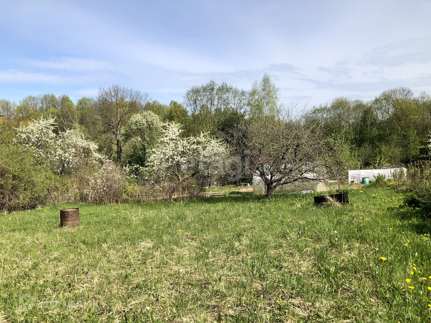 Участок с небольшим уклоном, земля быстро просыхает. Вода сезонная, столб с электричеством рядом с соседним участком.