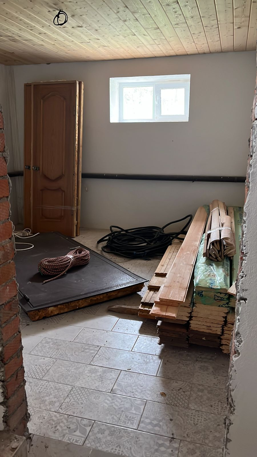 Цокольный этаж: три комнаты и котельная. Пол отделан плиткой.