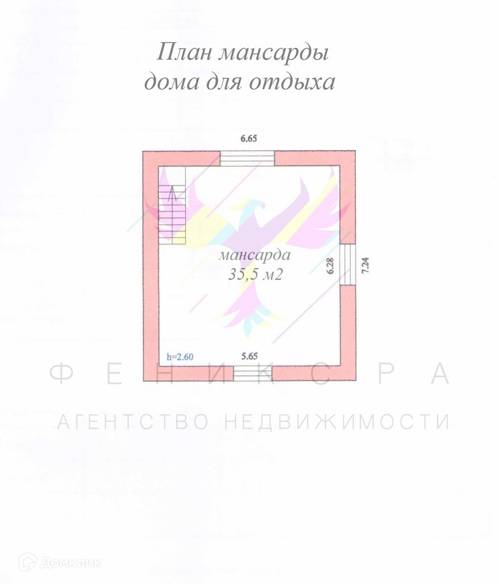 Мансарда 35,5 м2, высота потолка 2,60 метра.