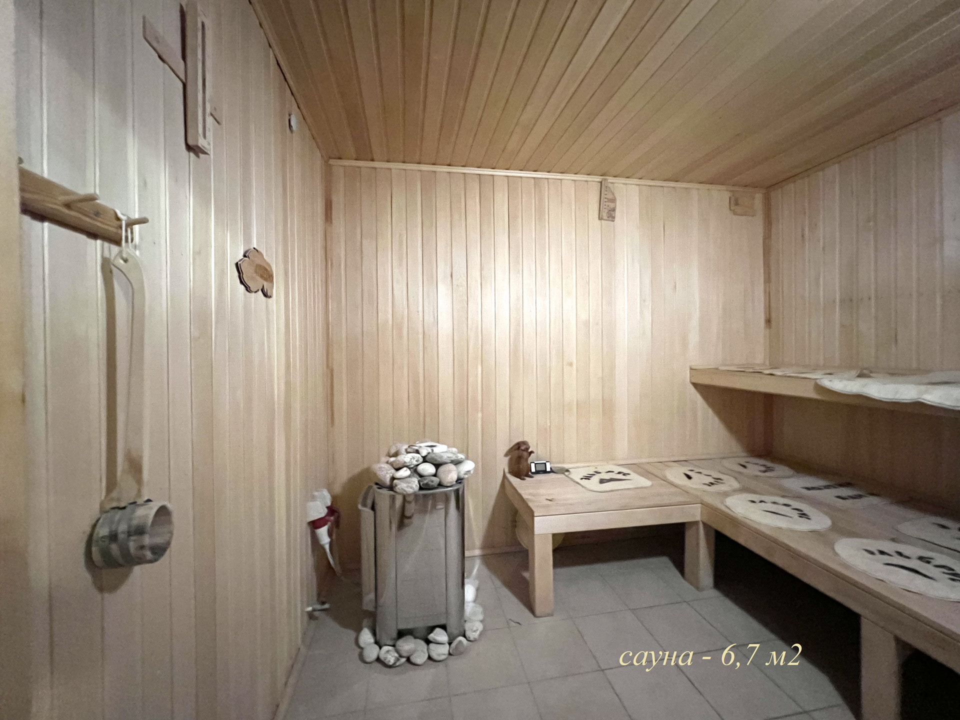 В гостевом доме находится: спортзал, бассейн с подогревом, сауна.