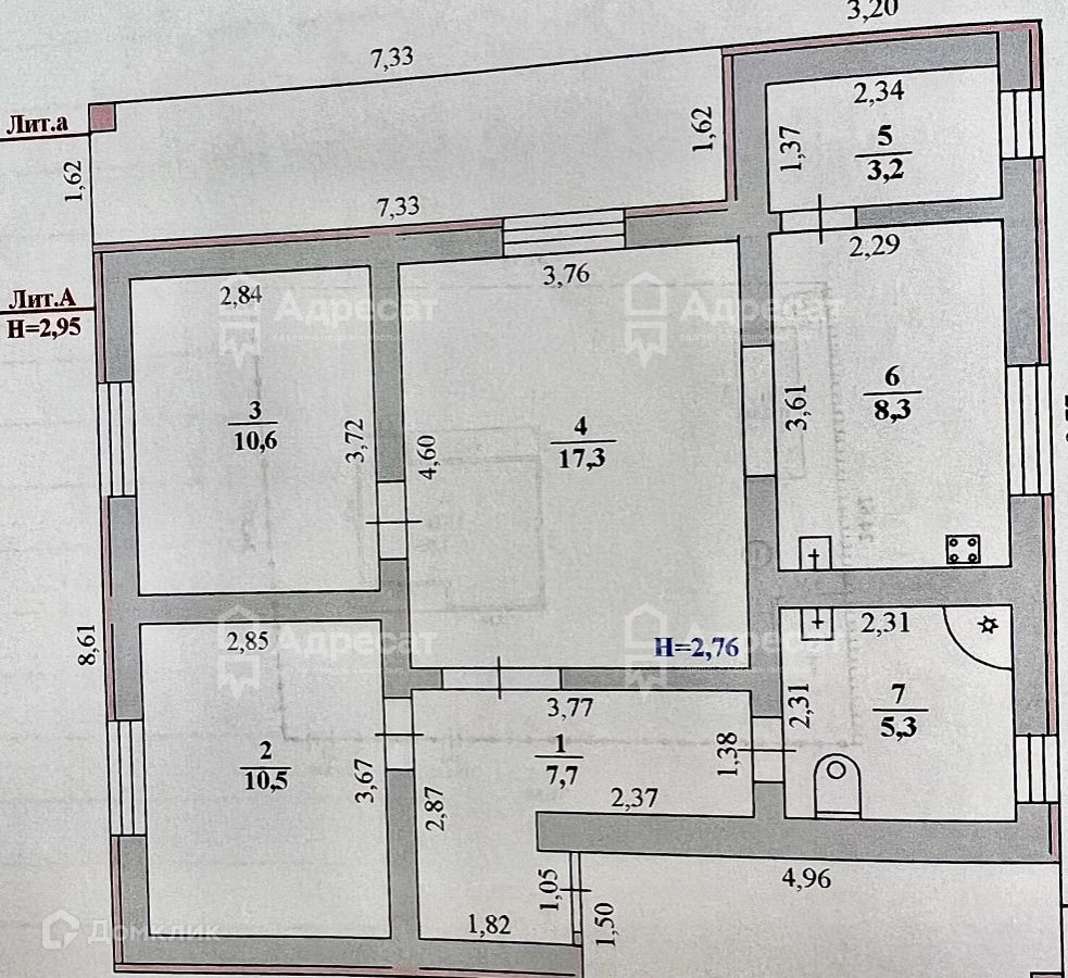 Высота потолков 2.8 м