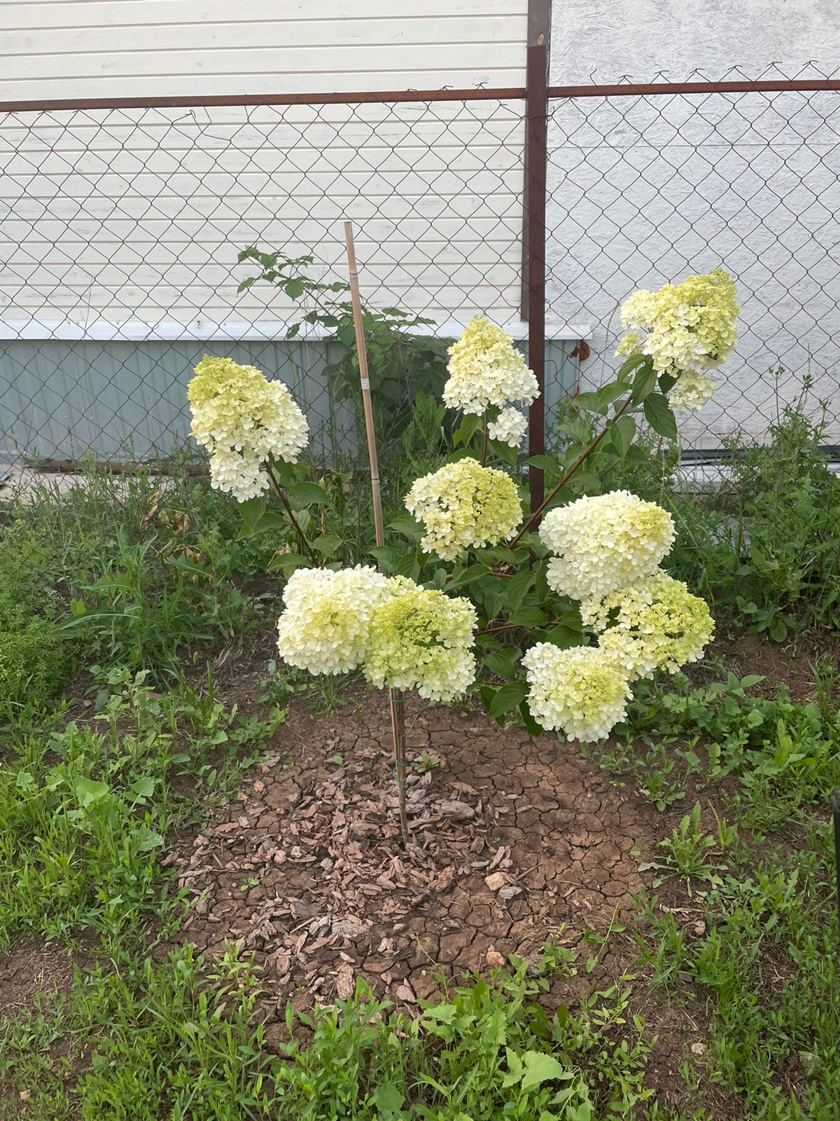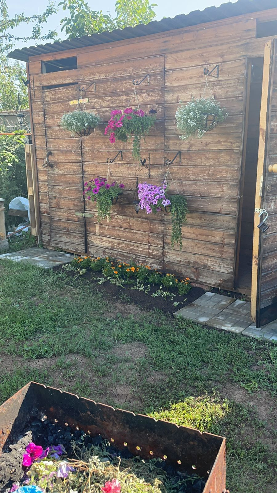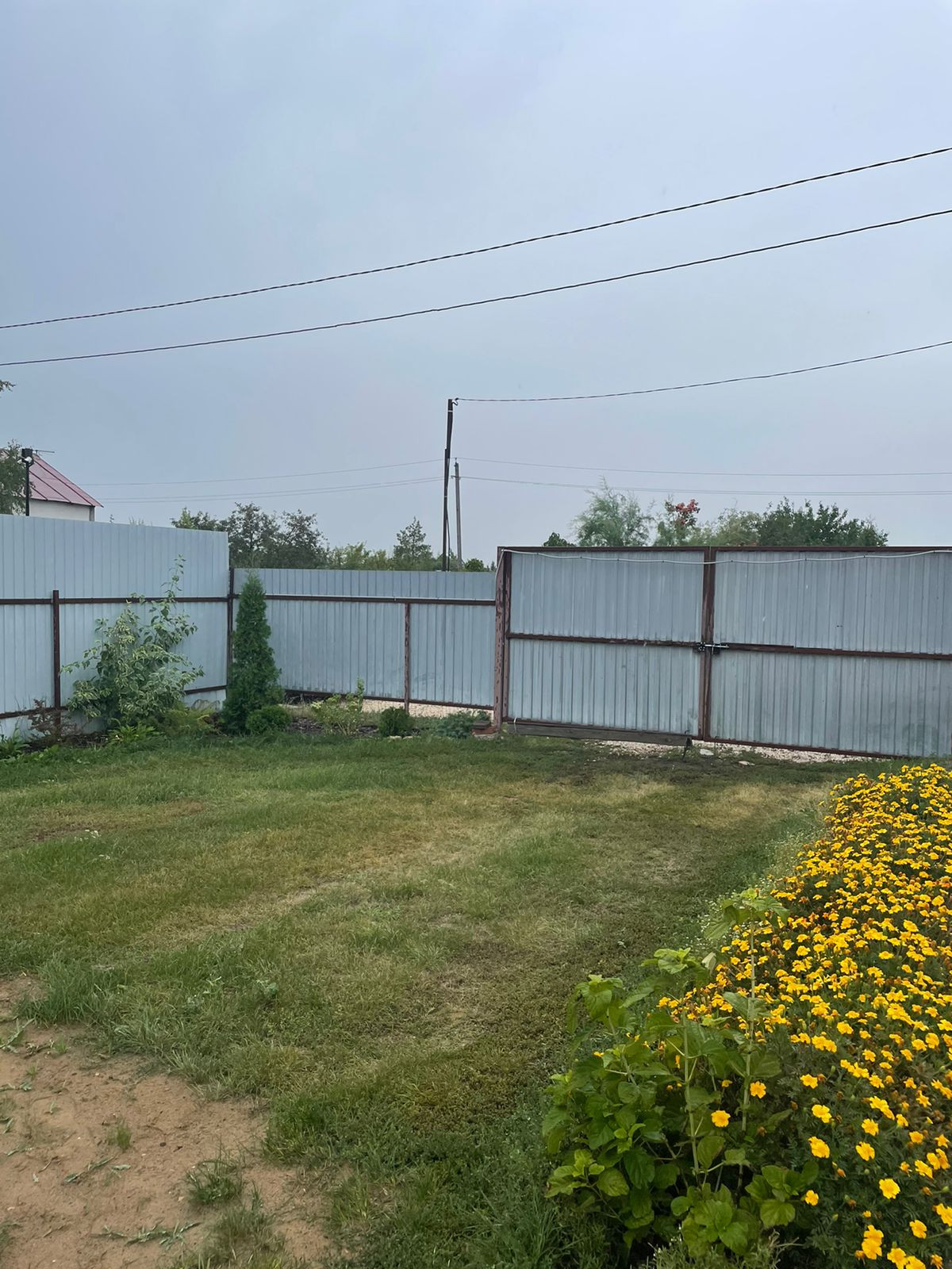 На территории участка закрытого с трех сторон профлистом имеется: