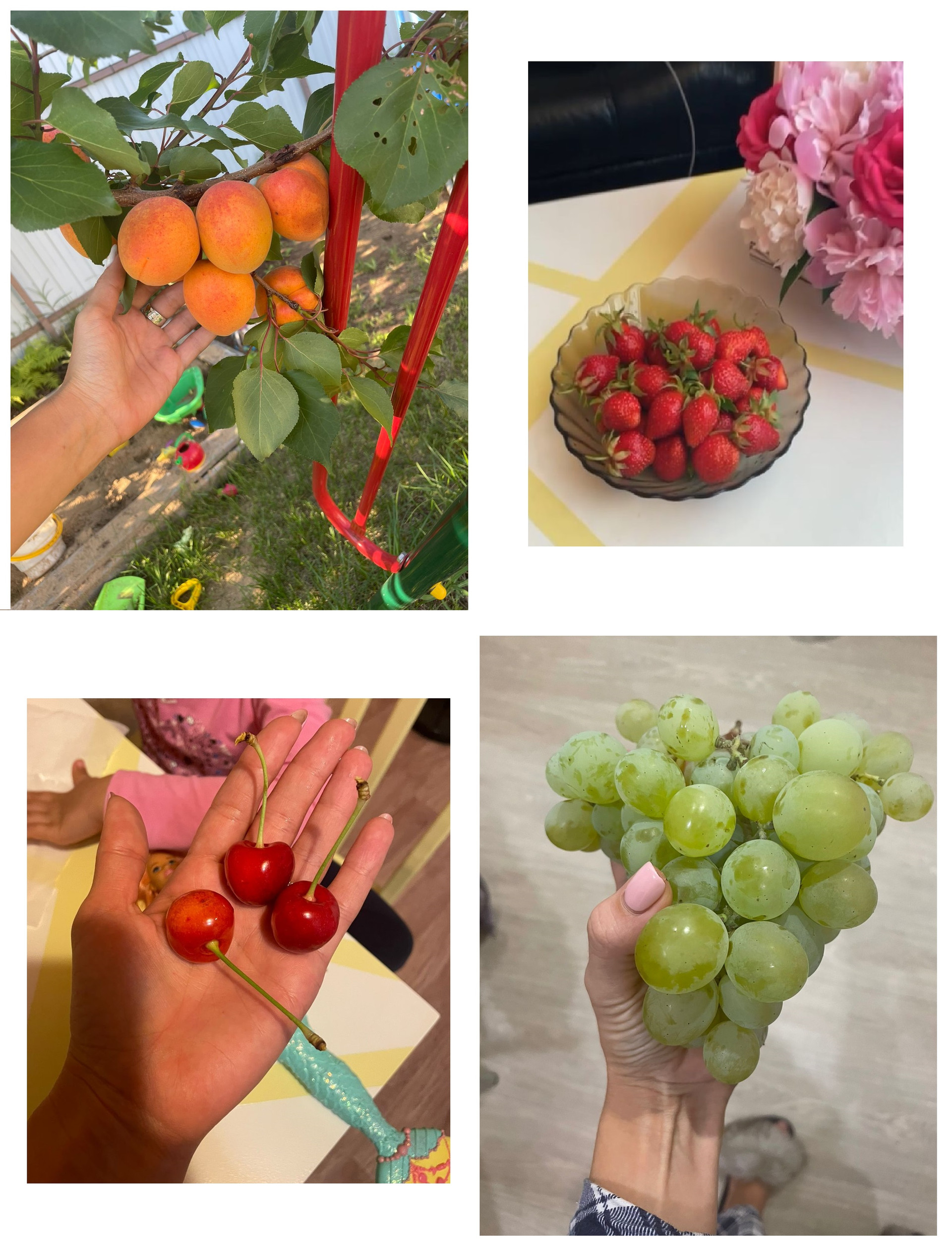 - зеленая зона с плодовыми деревьями: черешня крупная, абрикос очень крупный, яблоки поздние хранятся до весны, груша, вишня и слива. Несколько сортов крымского винограда. Все деревья молодые, очень удачных сортов. Грядка клубники. В прошлом году посажено много дорогих растений: метельчатые гортензии, туи, барбарисы и многое другое;