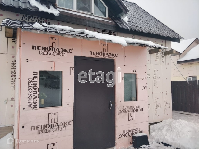 Двухэтажный дом из газоблока. На первом этаже есть удобная кухня и гостиная комната, на втором этаже большое помещение, которое можно разделить на несколько помещений. К дому подведена вода, электричество. Отопление: твёрдотоплевный котёл и тэны для поддержания тепла во время долгого отсутствия, которые находится в техническом помещении в 10 метрах от дома.