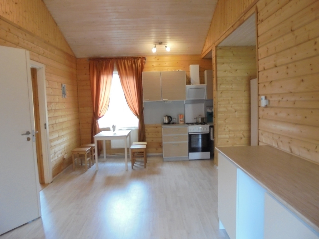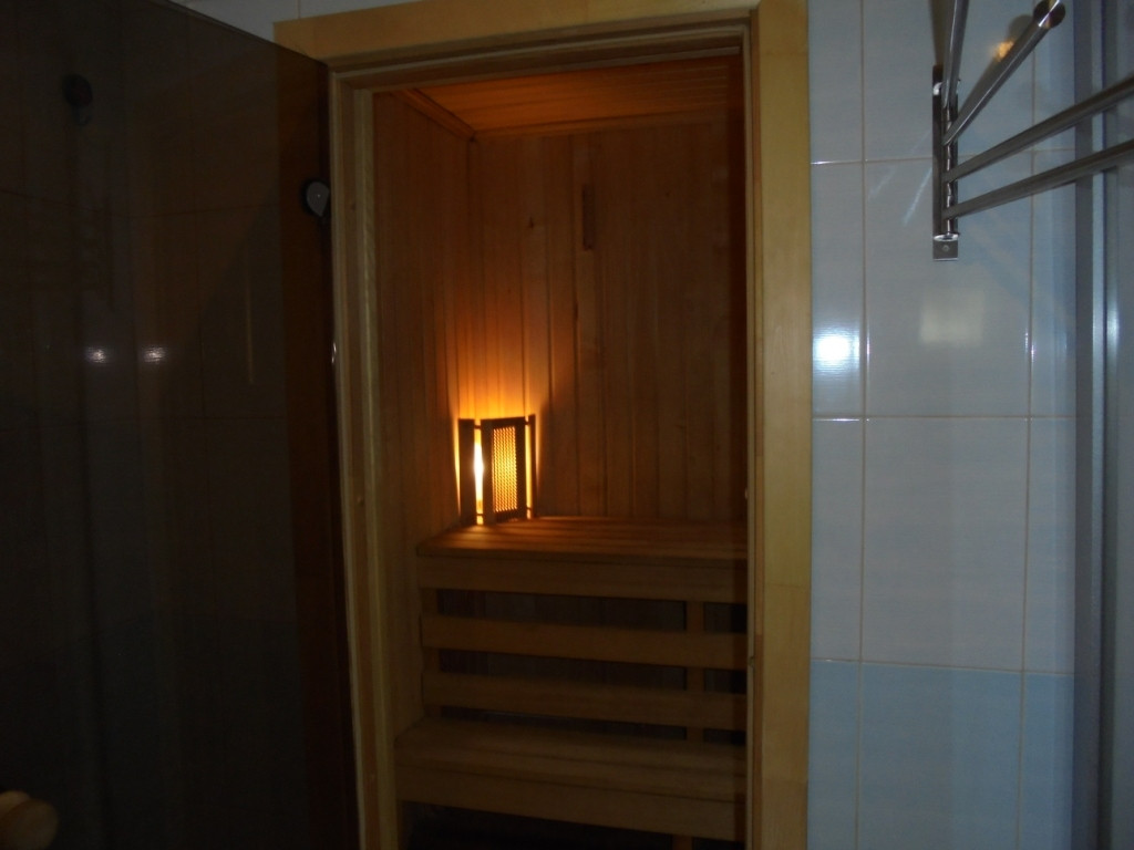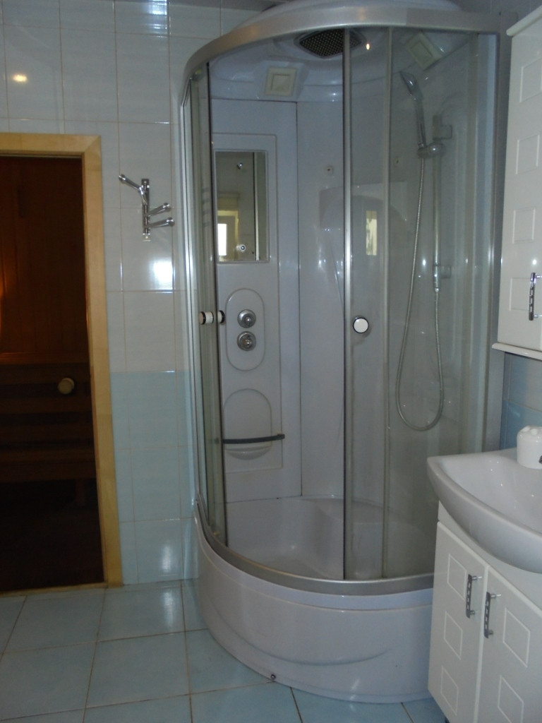 Из кухни выход в совмещённый санузел и сауну.