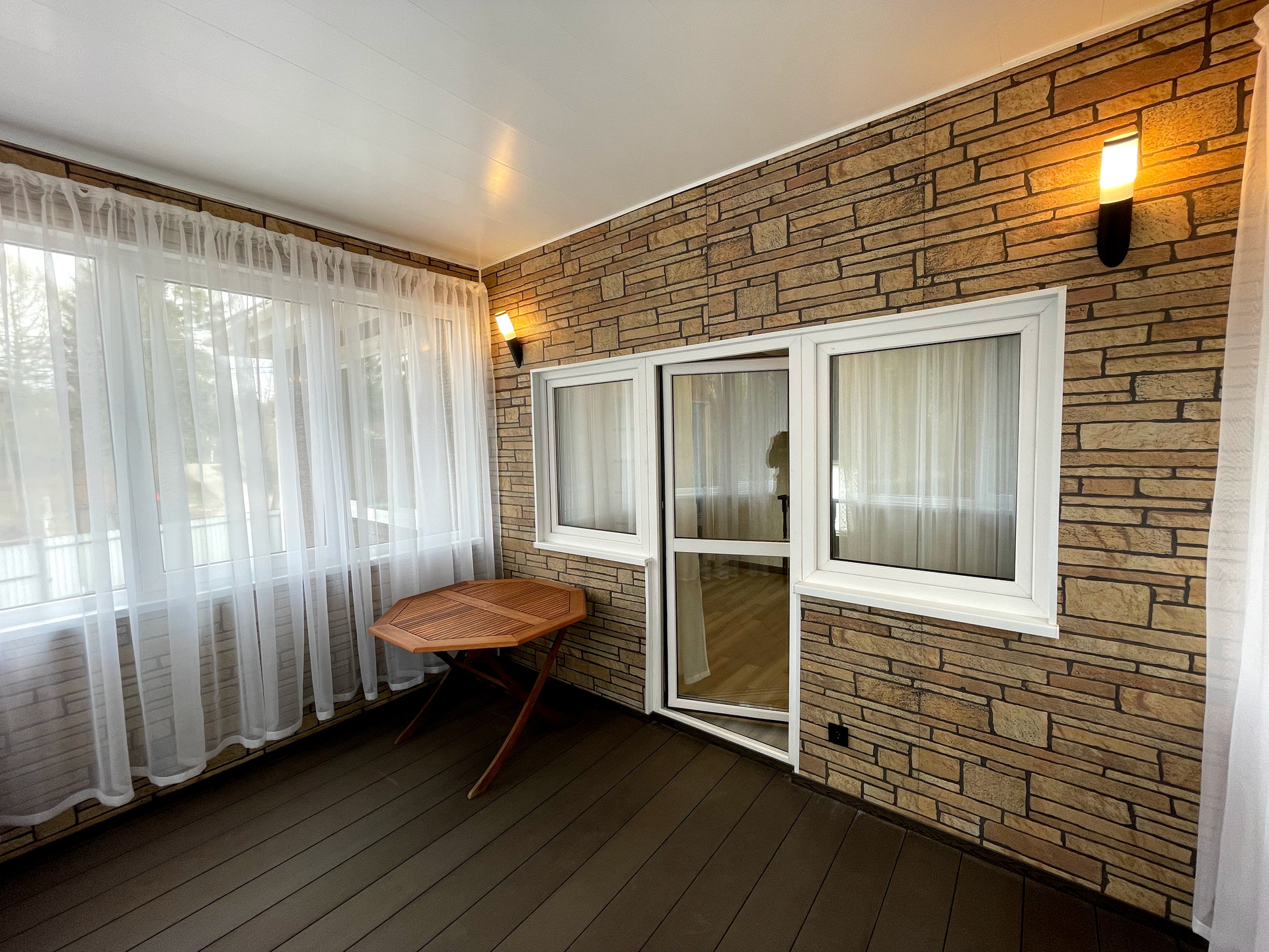 - панорамный балкон и просторная застекленная терраса, при желании можно утеплить и увеличить жилую площадь и количество помещений