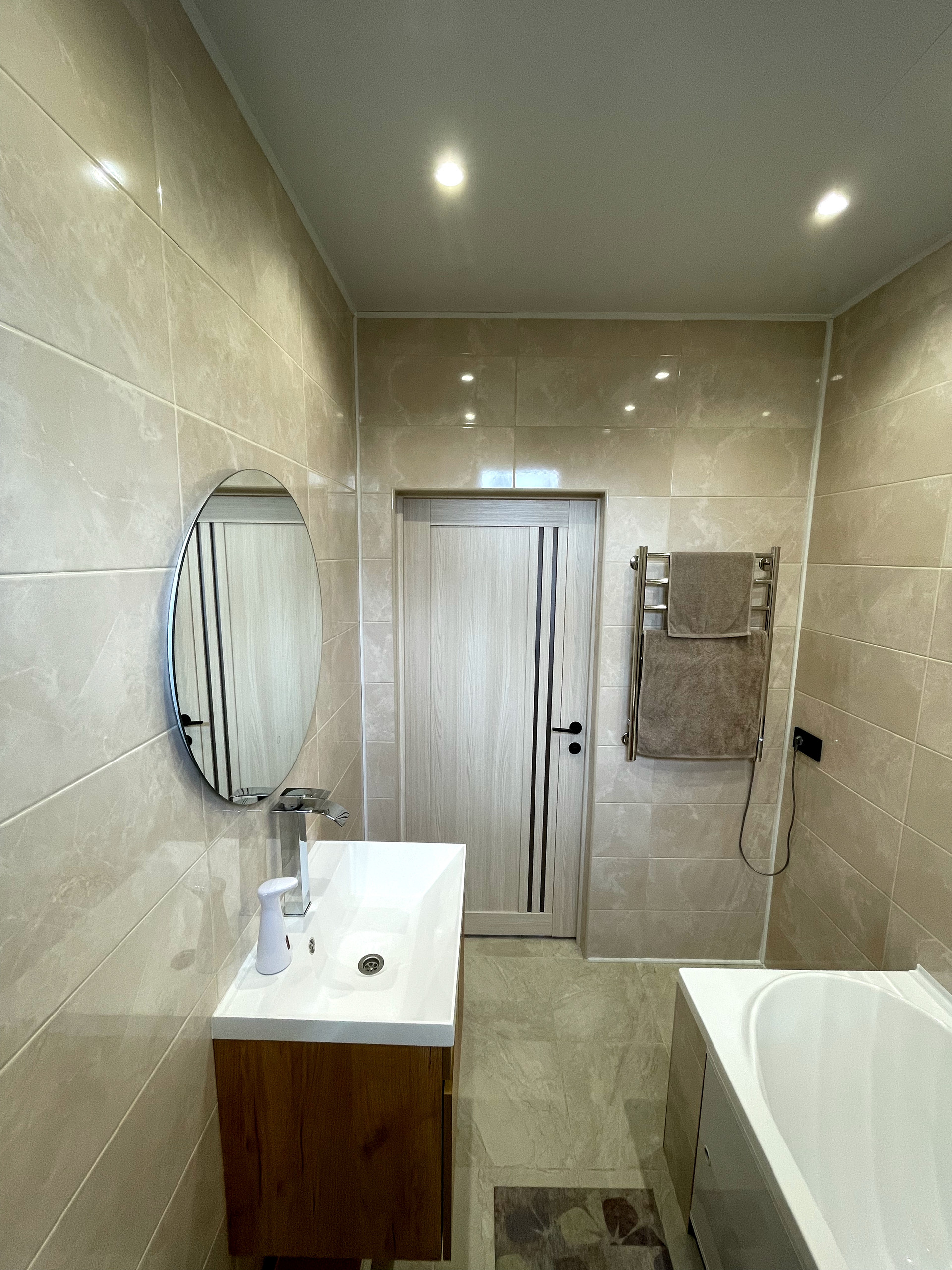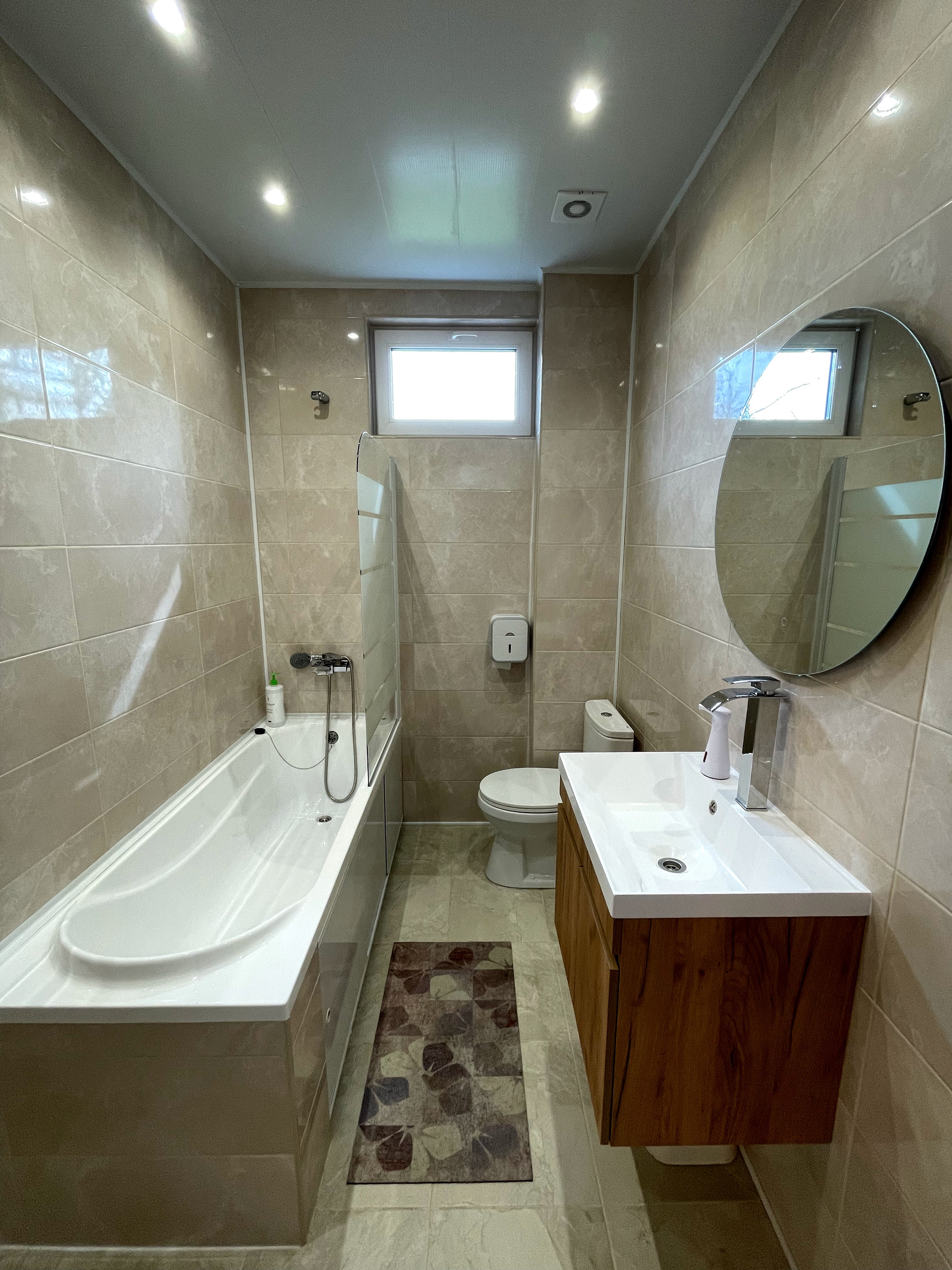 -два санузла на 1 и 2 этажах (первый этаж отделка керамогранит, раковина, унитаз, выводы под стиральную машину, дополнительные выводы под ванну, душ или беде, если есть необходимость, спокойно можно доставить, установлен тëплый пол, на втором этаже отделка плиткой, ванная, унитаз, раковина). Горячая вода круглогодичная подаëтся насосом из колодца на 8 колец через фильтр в бойлер 100 литров и накопительный бак, зимой ничего не замерзает, все трубы утеплены, проложен тепловой кабель. Отходы сливаются в два переливных колодца на 4 и 3 кольца (в первом заселены бактерии, во второй уходит вода)