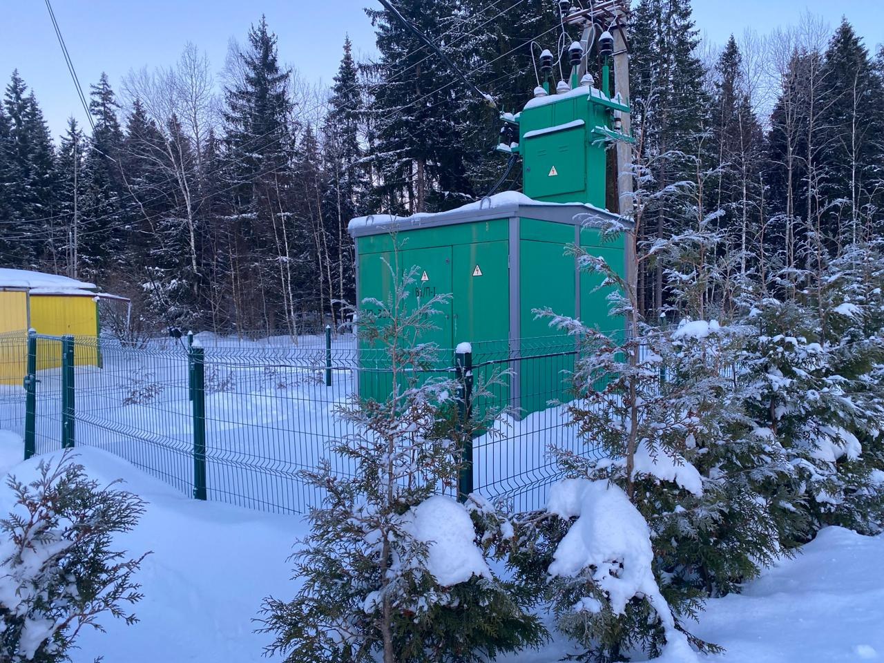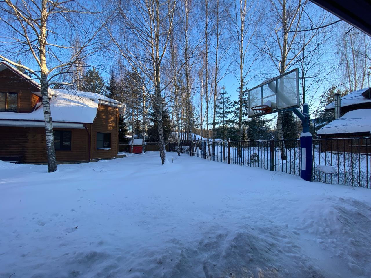 огорожен по периметру, имеет собственный выход в лес, полный грибов и ягод.