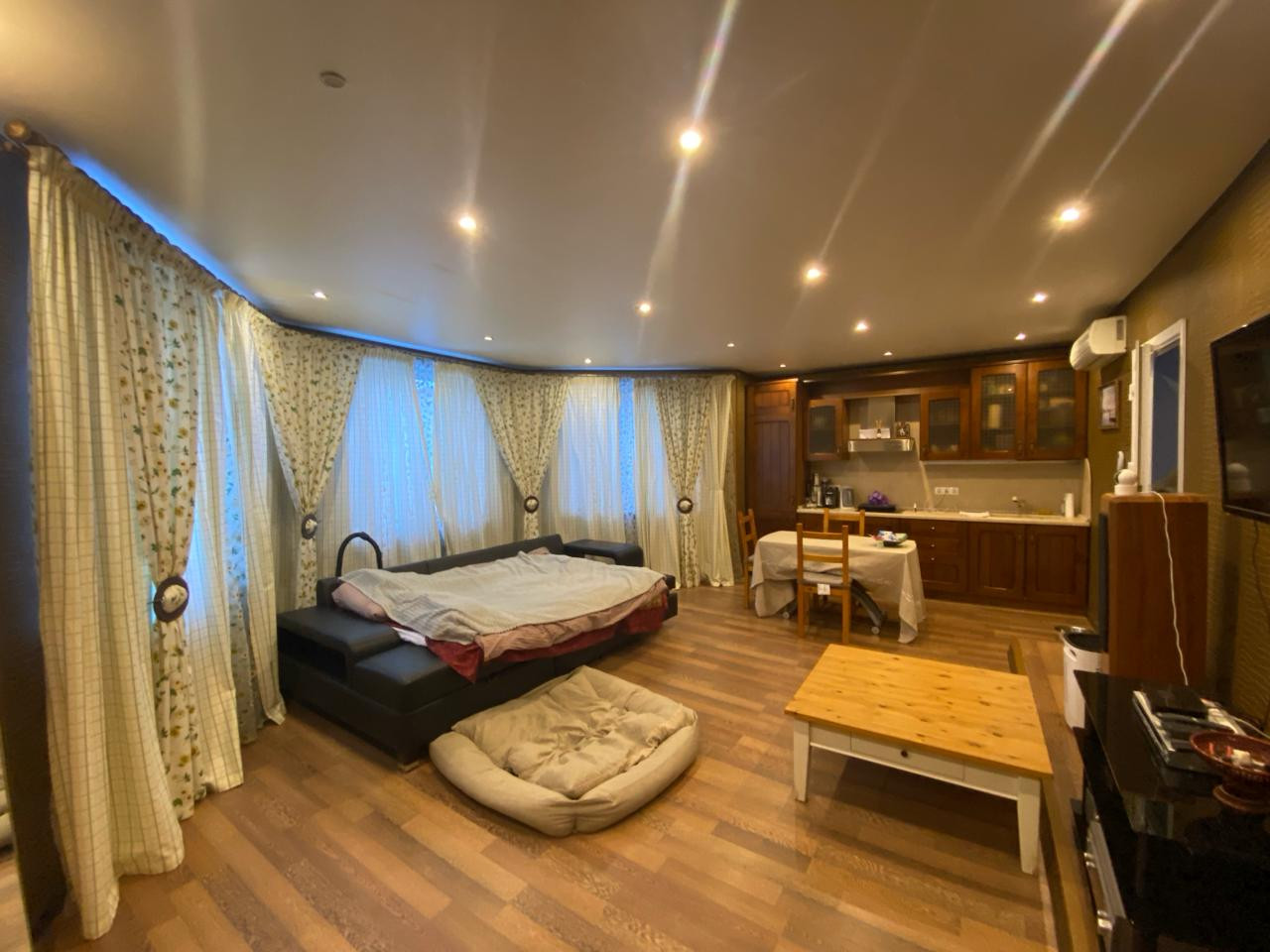просторную кухню-гостиную, спа-зону (плавательный бассейн, сауна, санузел).