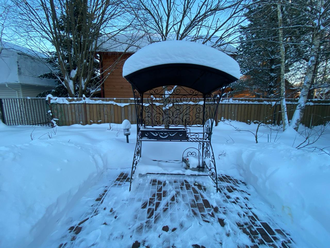со всех сторон огорожен забором,