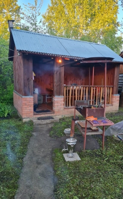 На участке расположены - теплица, баня, беседка с мангалом , летний домик с кухней и комнатой отдыха, металлическая ракушка - гараж, уличный туалет.