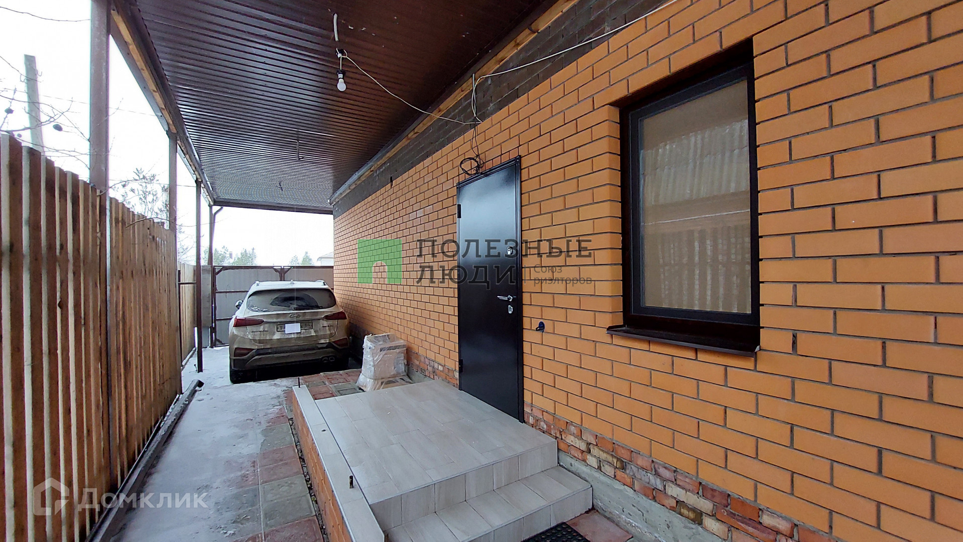 В дом можно зайти с двух сторон: с основной дороги, а также со стороны дачного массива. При въезде в дом - выложенная плиткой стоянка с навесом на 1 автомобиль.