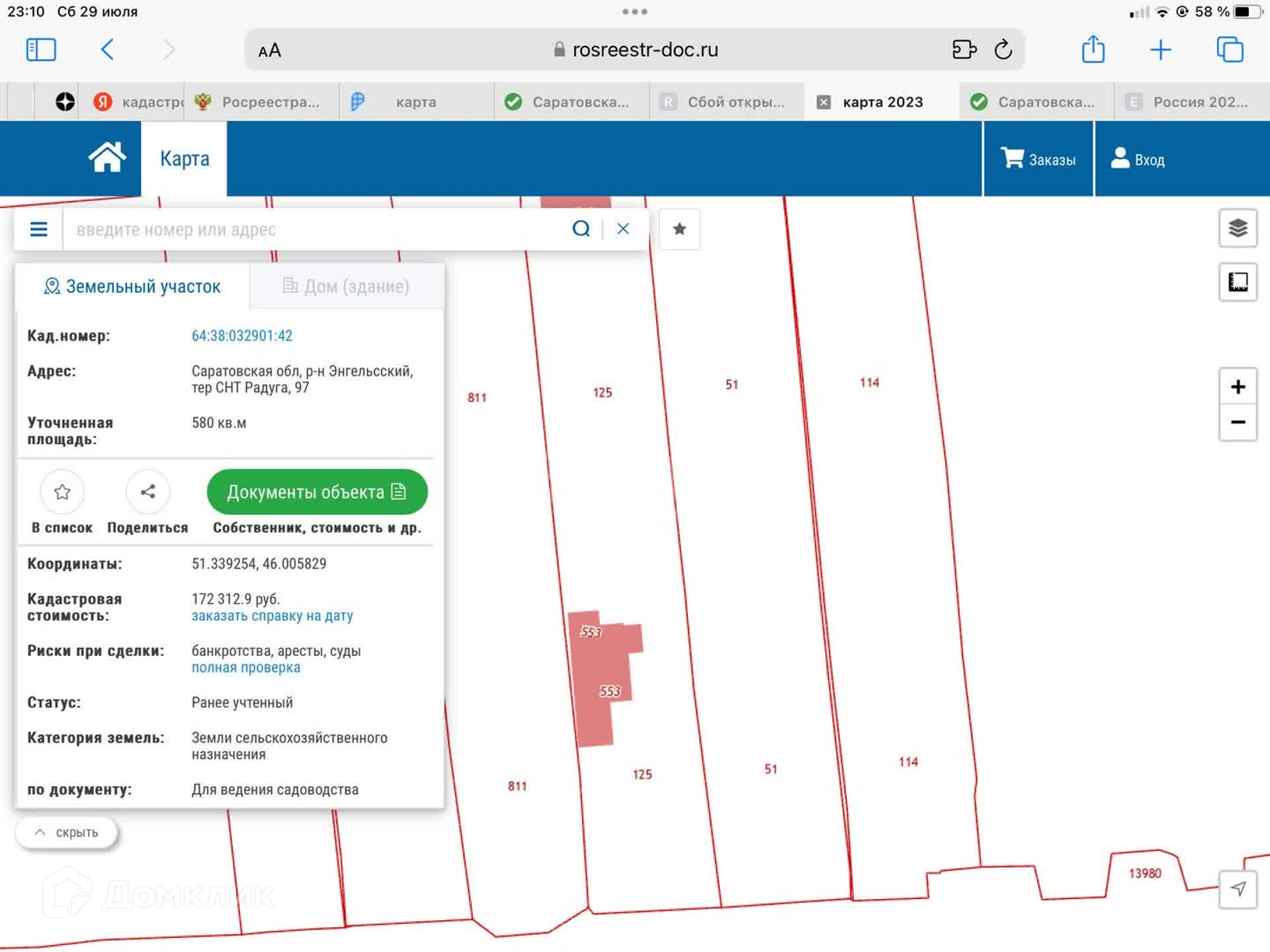 Площадь участка 5.8 сот.