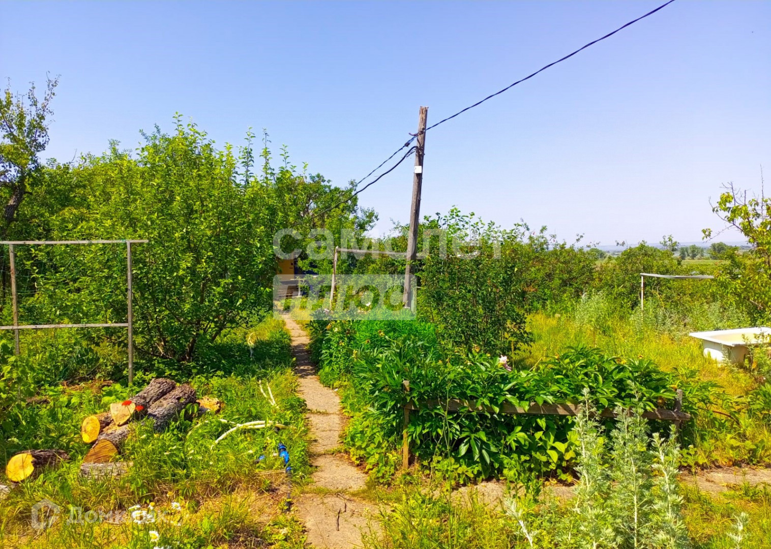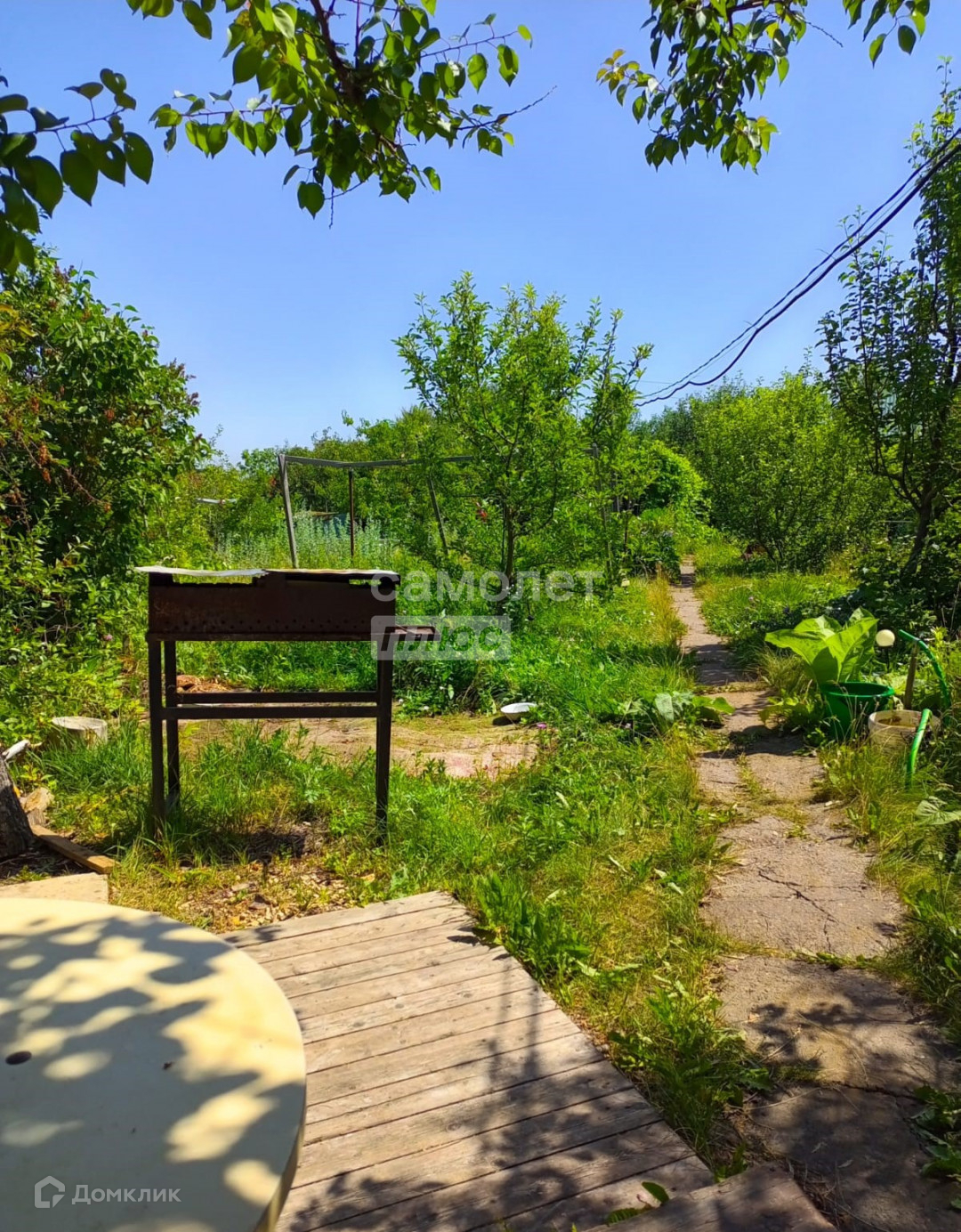 На участке 5,5 соток земли растут яблони, груши, калина, абрикосы, елки, ирга, желтая малина, вишня, клубника, смородина и т.д.  На участке большая емкость для запаса воды, сан узел, хозблок, мангальная зона. Парковочное место под две машины.
