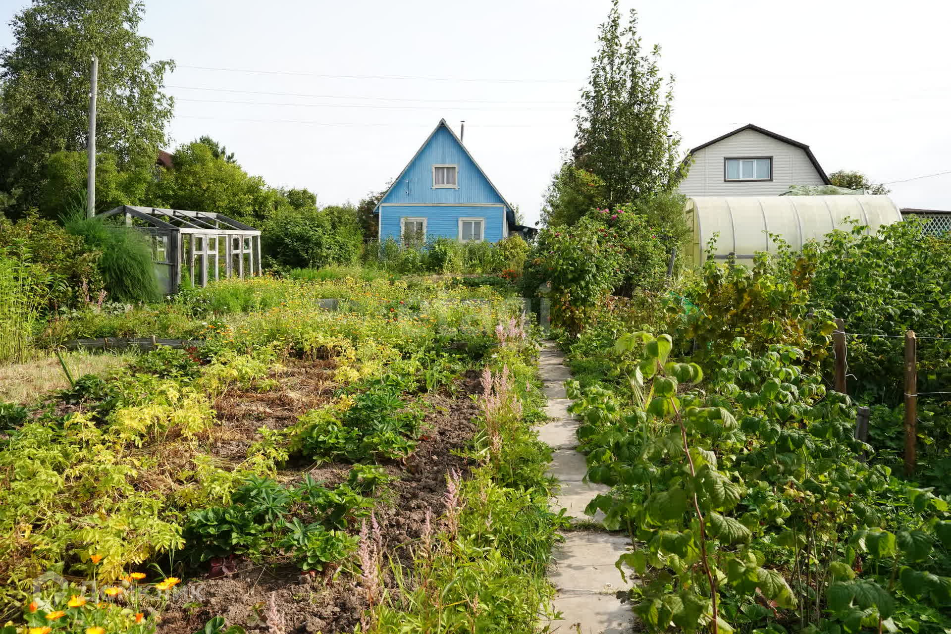 На территории расположены щитовой дом, уютная баня, теплица и сарай, что делает его идеальным для сезонного отдыха.