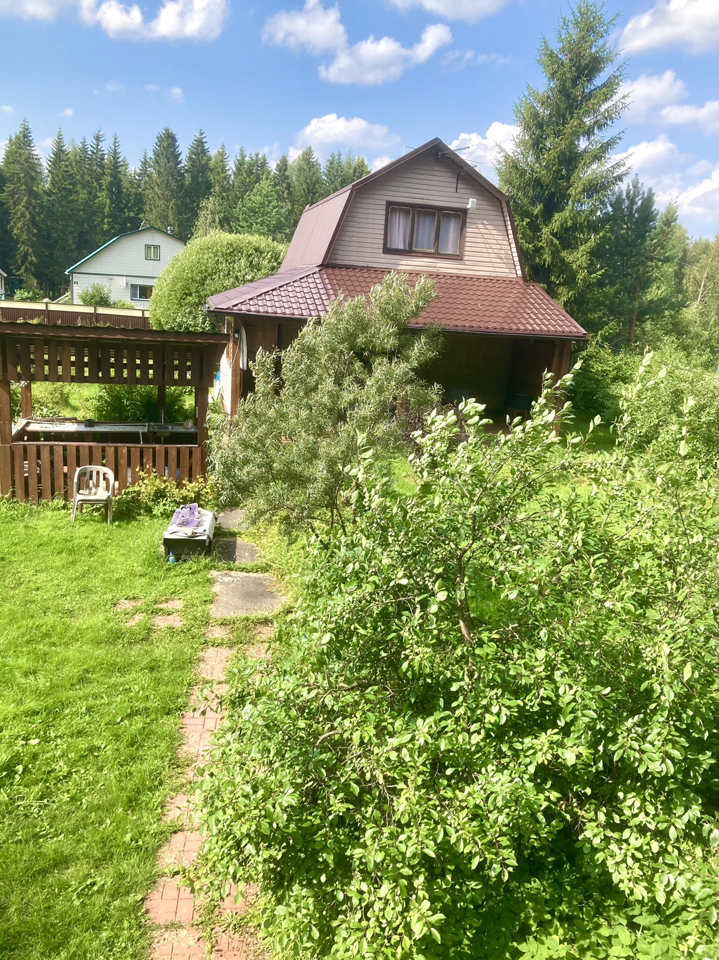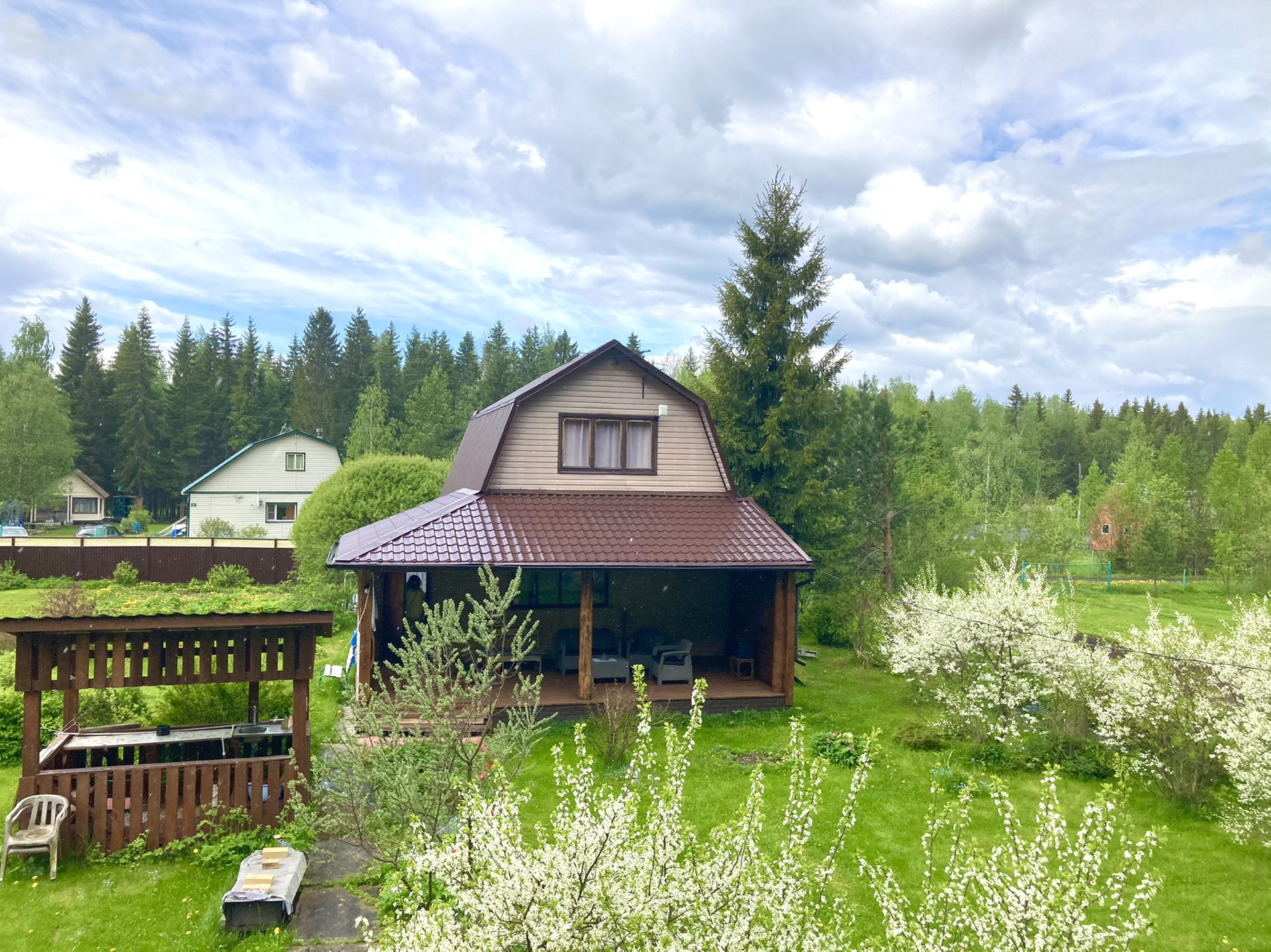 Закрытый кооператив всего на 40 домов; вид на лес (за которым озеро Чогозеро)