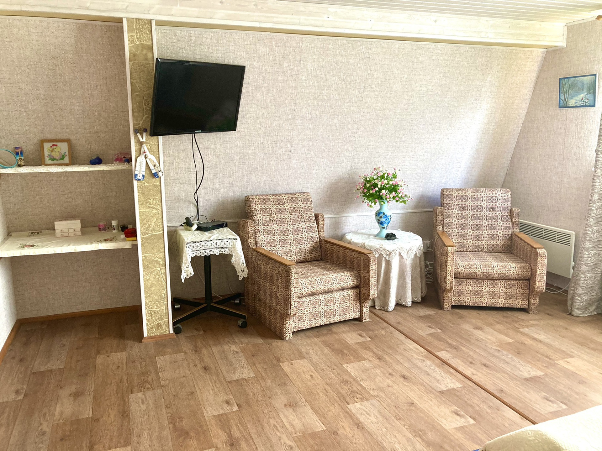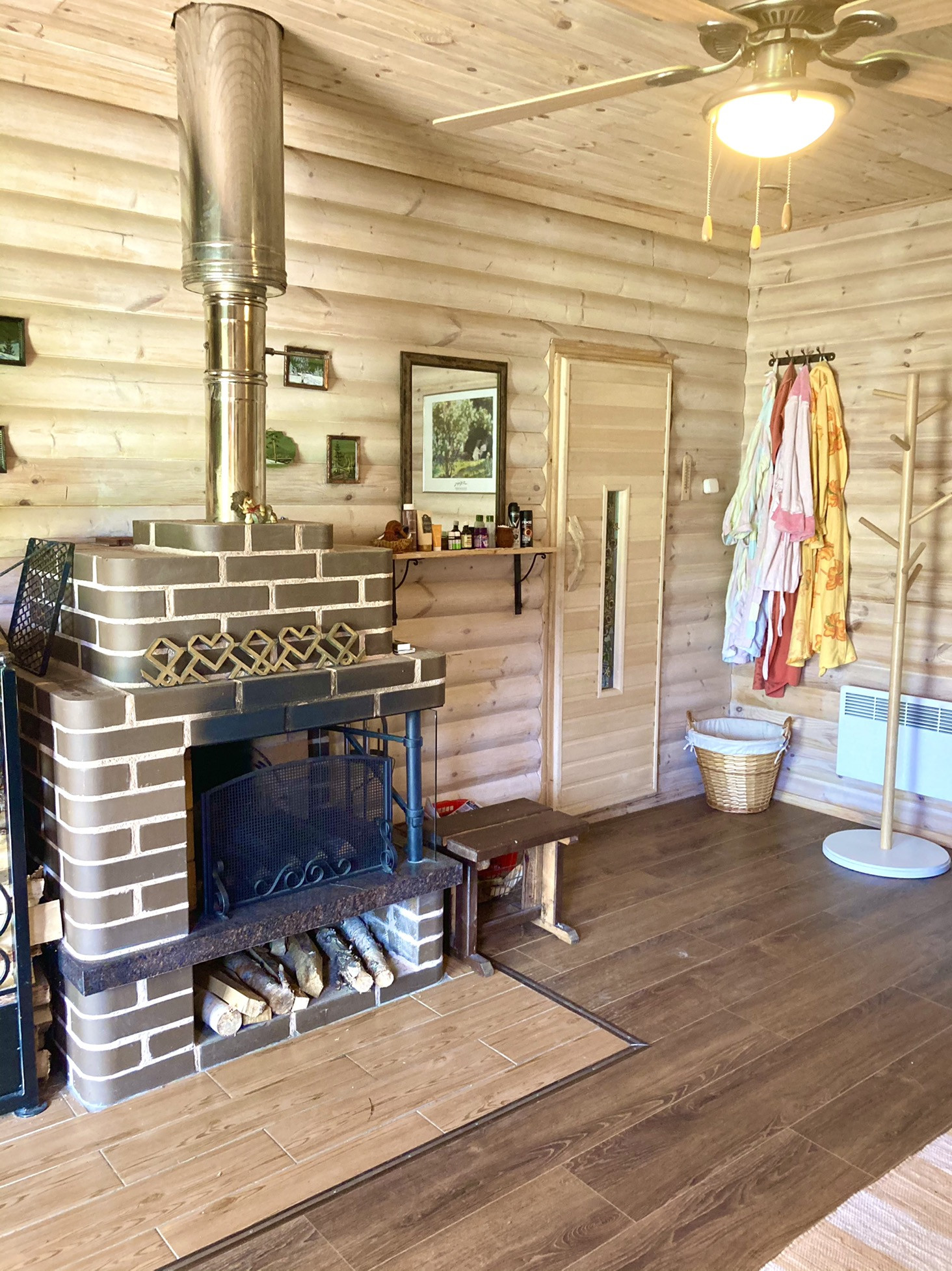 Парная комната 25 кубов, печь Harvia Финляндия (премиум качество), обшивка стен канадский кедр; пол лиственница; скамейки абаш (не нагреваются) банные полки длиной 4 метра