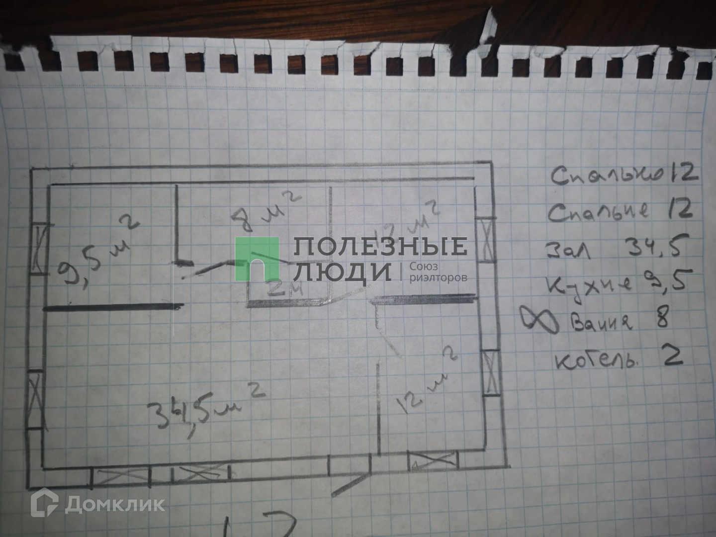 Жилая площадь 58.5 м2