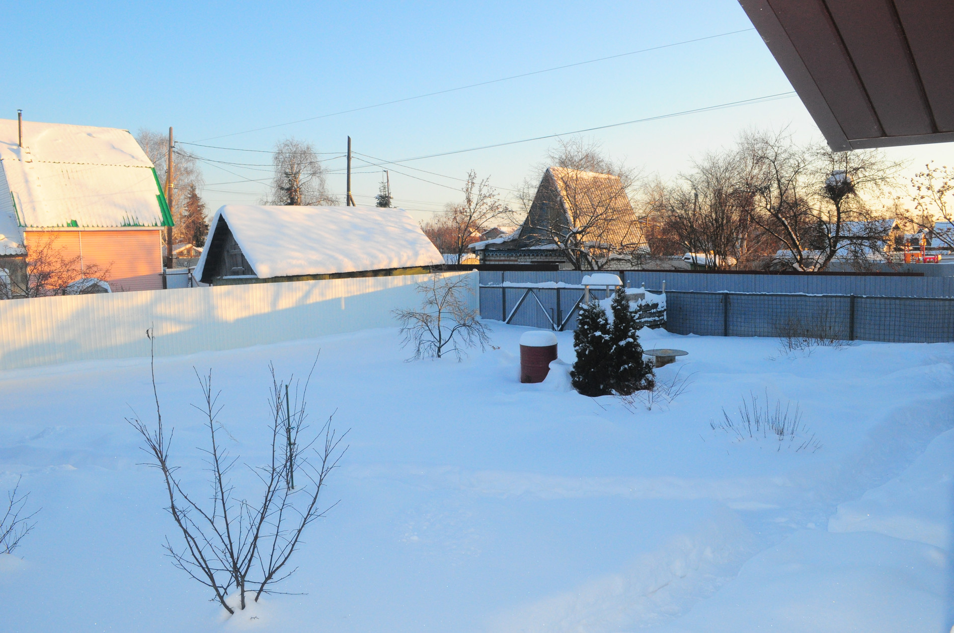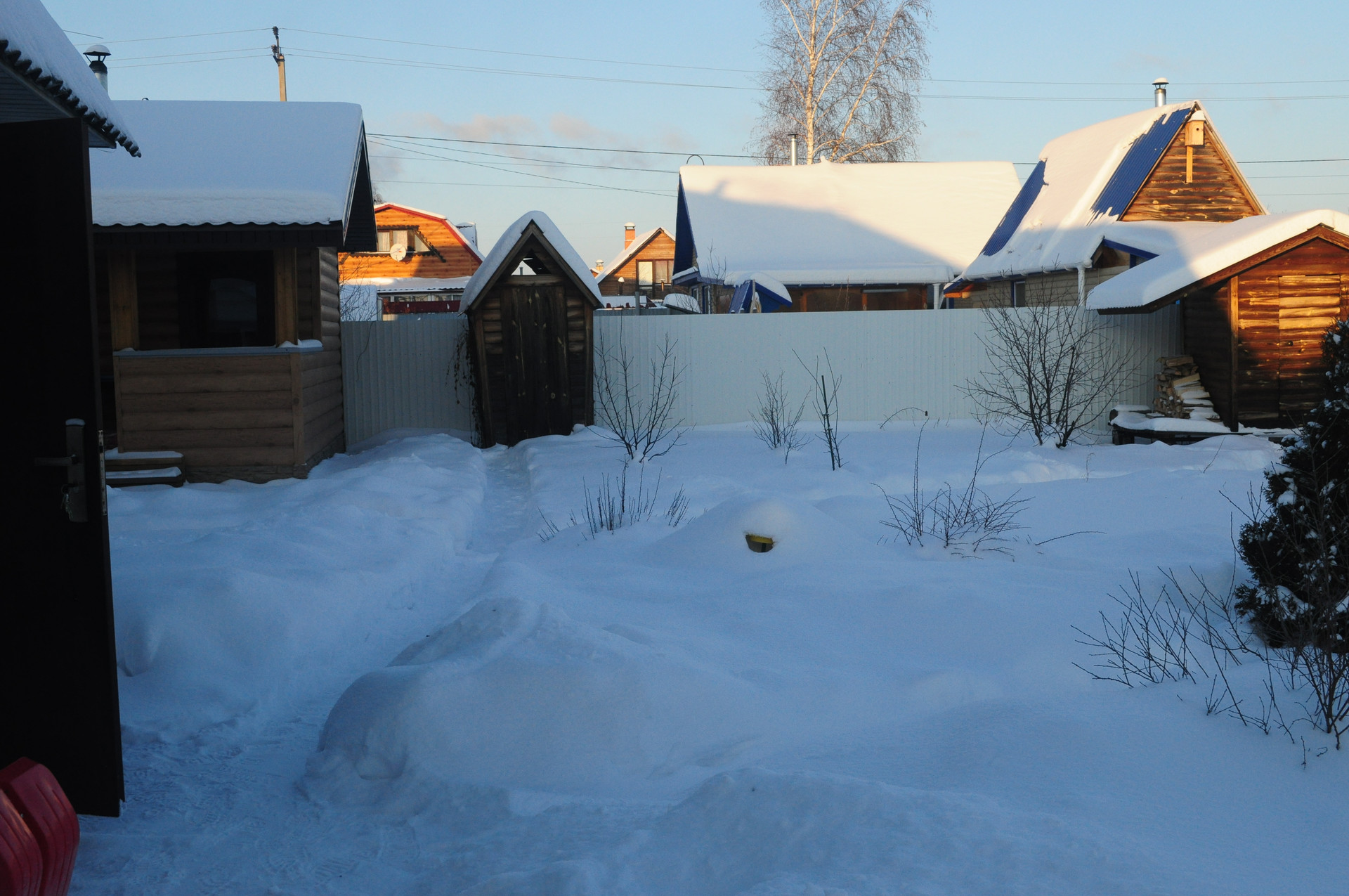 огорожен забором из профнастила.