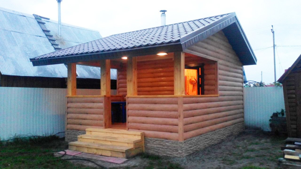 бане 3года. материал брус 150. обшита лиственницей. очень комфортная,красивая. состояние идеальное.