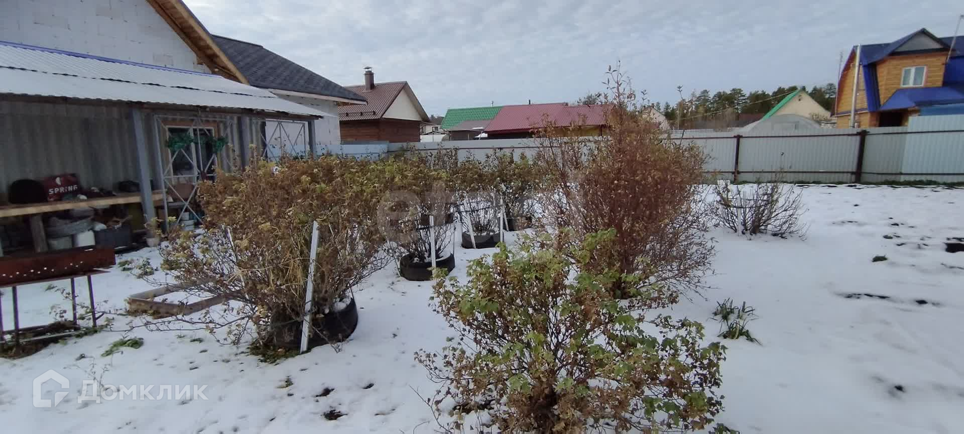 Участок обработан. Земля хорошая, всегда богатый урожай. Есть яблони, вишня, слива, малина, жимолость, смородина (черная и красная), клубника.