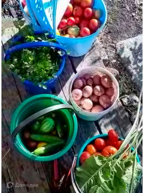 участок огражден металлическим обрамлением , земля плодоносная : растет все от цветков роз,до яблони,сливы,баклажанов,хороший урожай картофеля . Подходи для спокойного отдыха и барбекю.