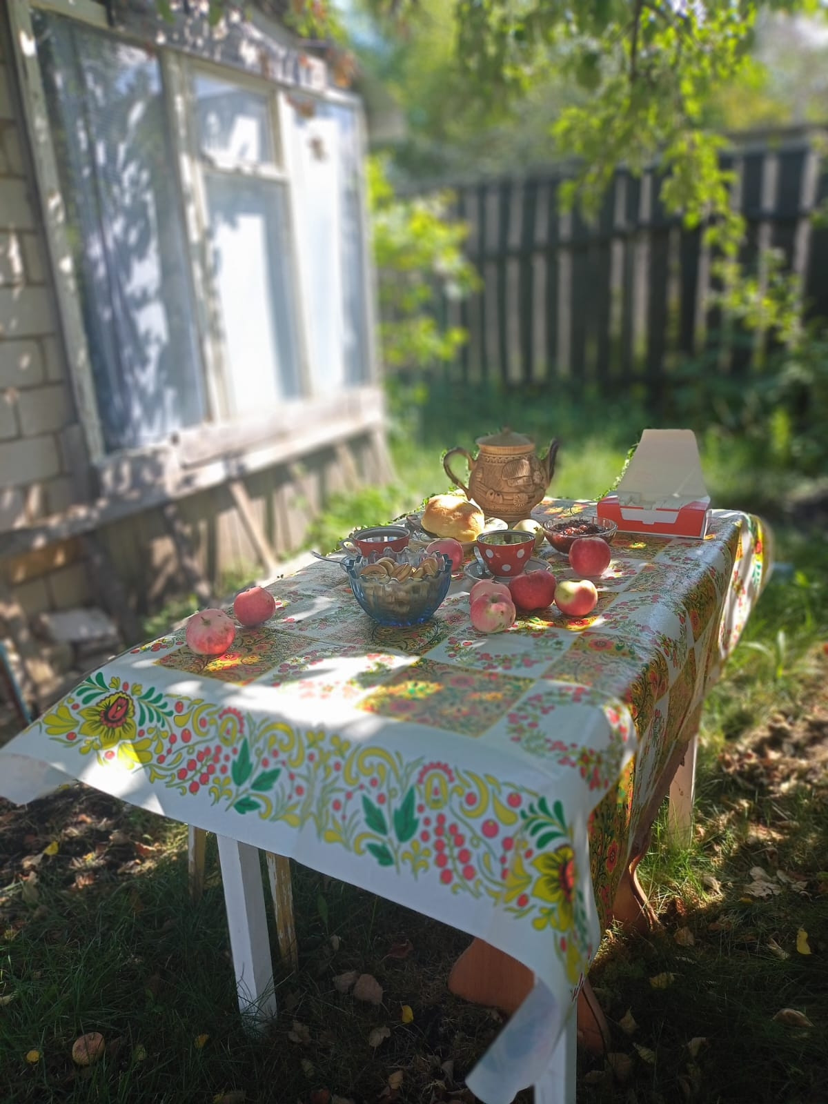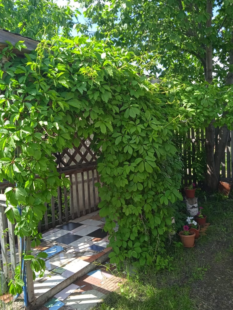 Насаждения: яблони, сливы, смородина, крыжовник, виноград.