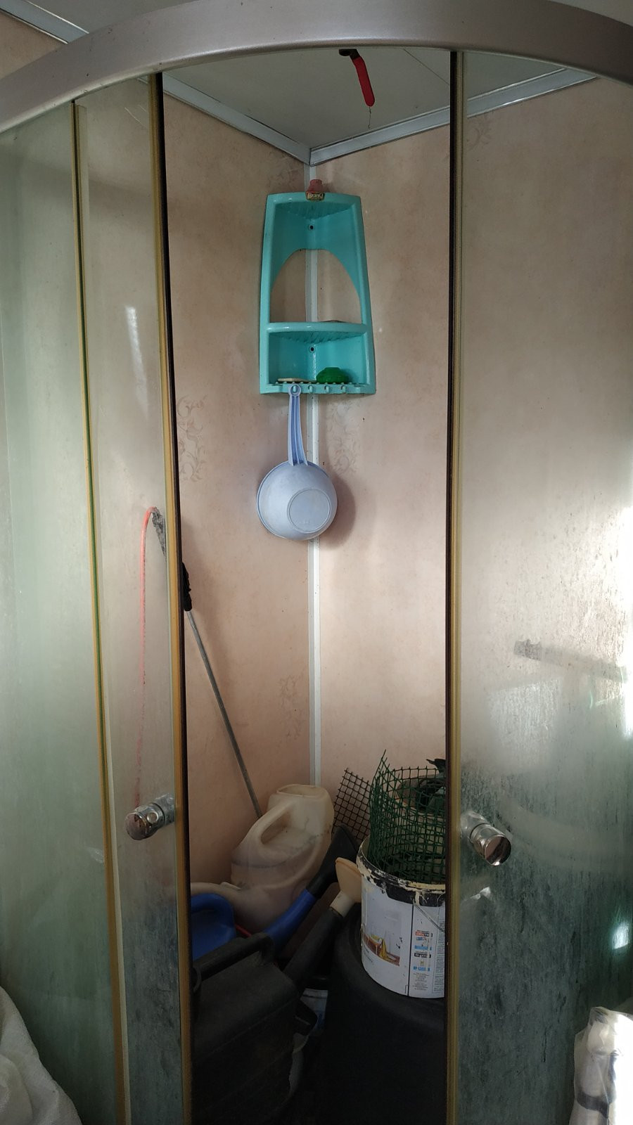Летний душ с душевой кабиной. Хозблок.