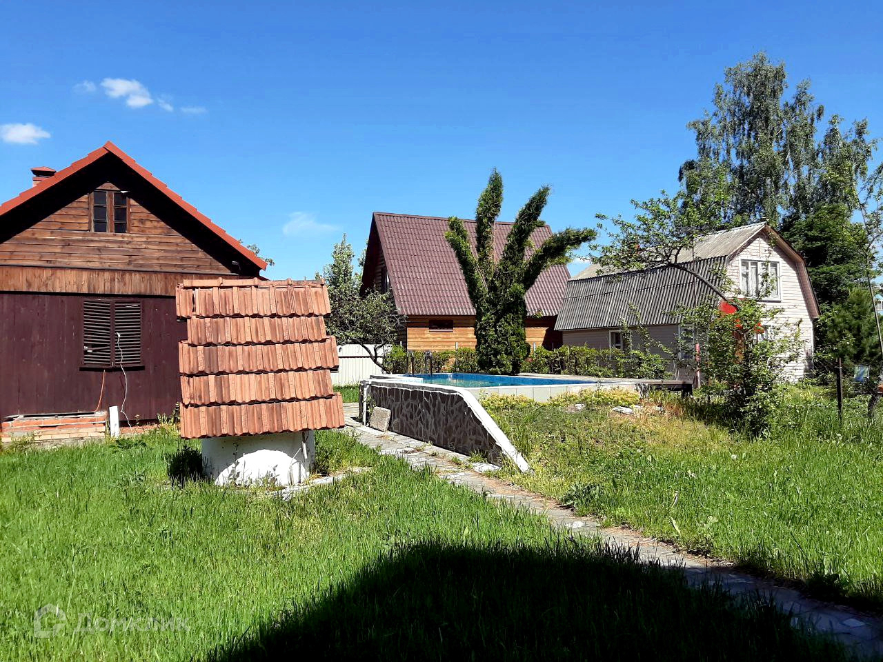 На участке расположен монолитный бассейн. Также имеется бревенчатая баня, с печкой, сауной и комнатой отдыха.