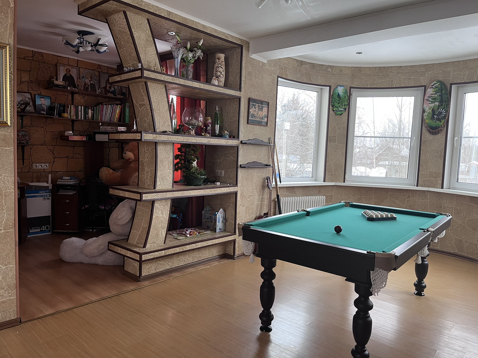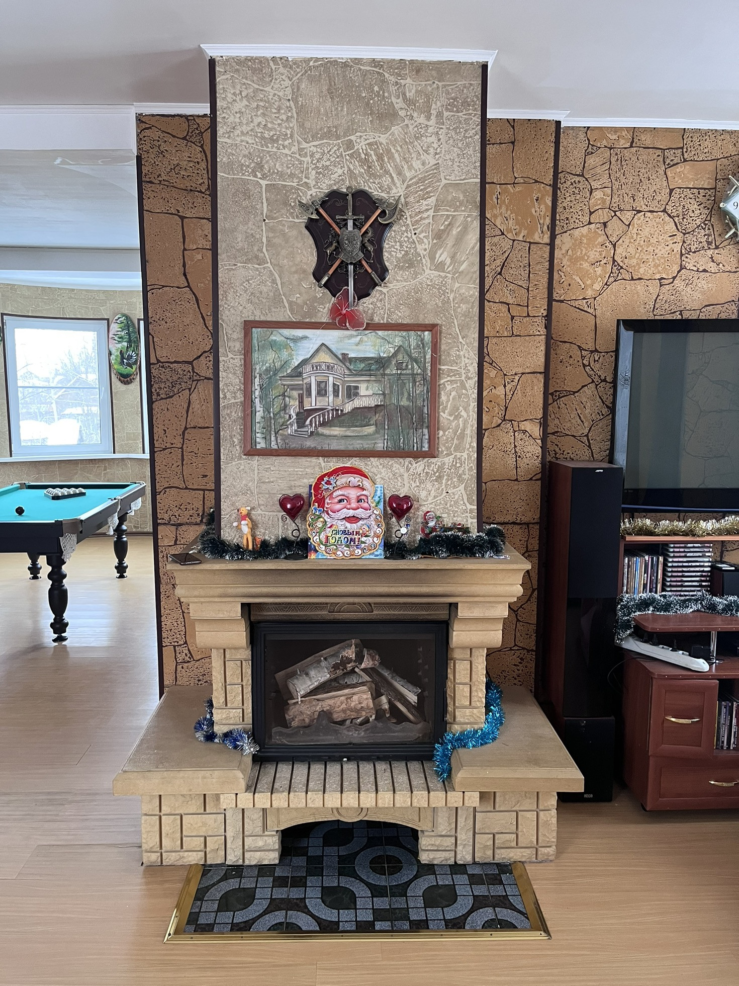 2-ой этаж: прихожая,большой холл с тв зоной и камином,кабинет,душевая комната с с/у,кухня с окнами по периметру