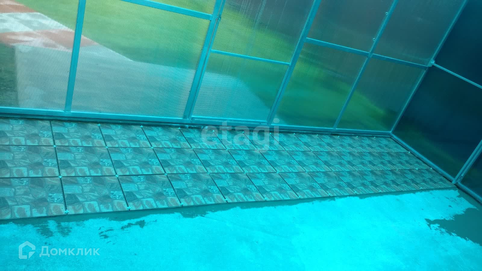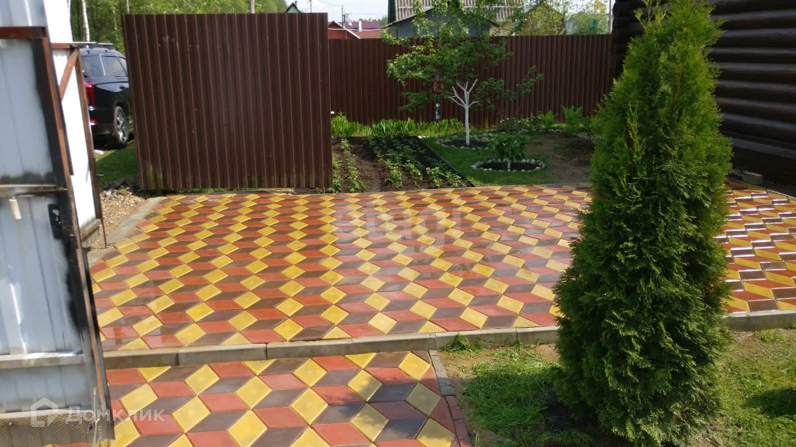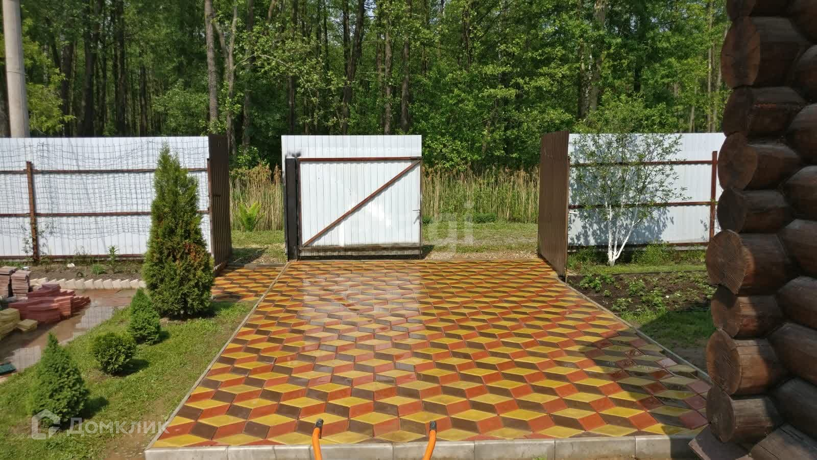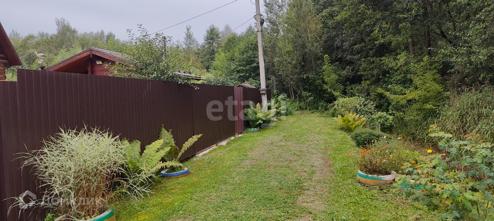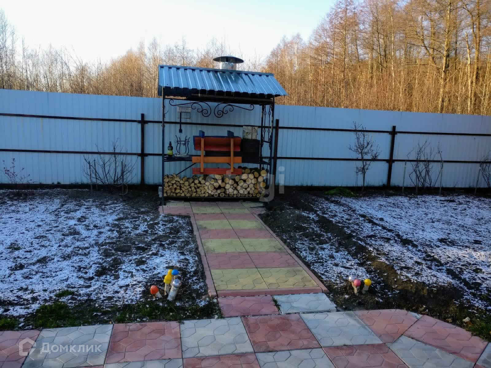 Участок полностью огорожен профнастилом. Есть небольшая теплица 5х3, часть огорода для насаждений.