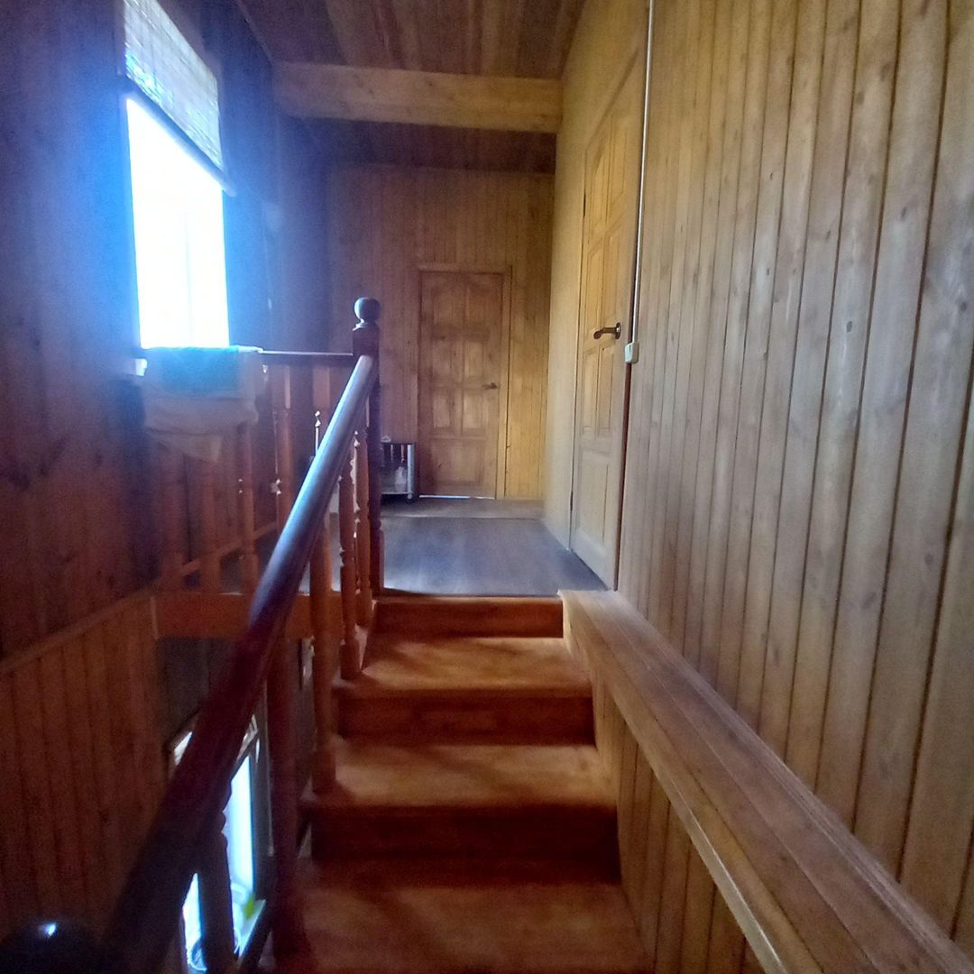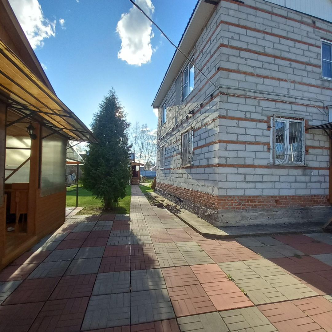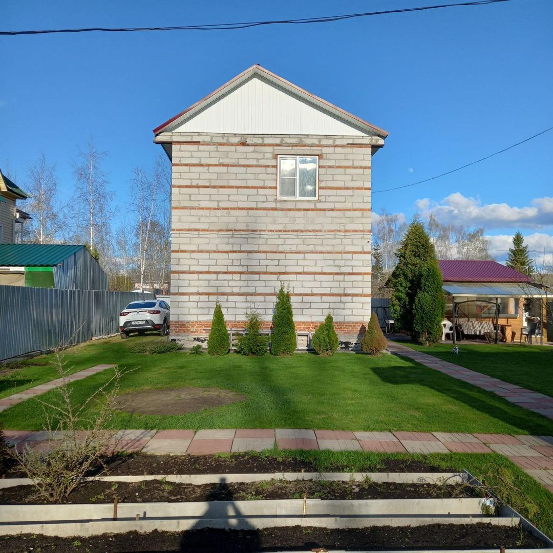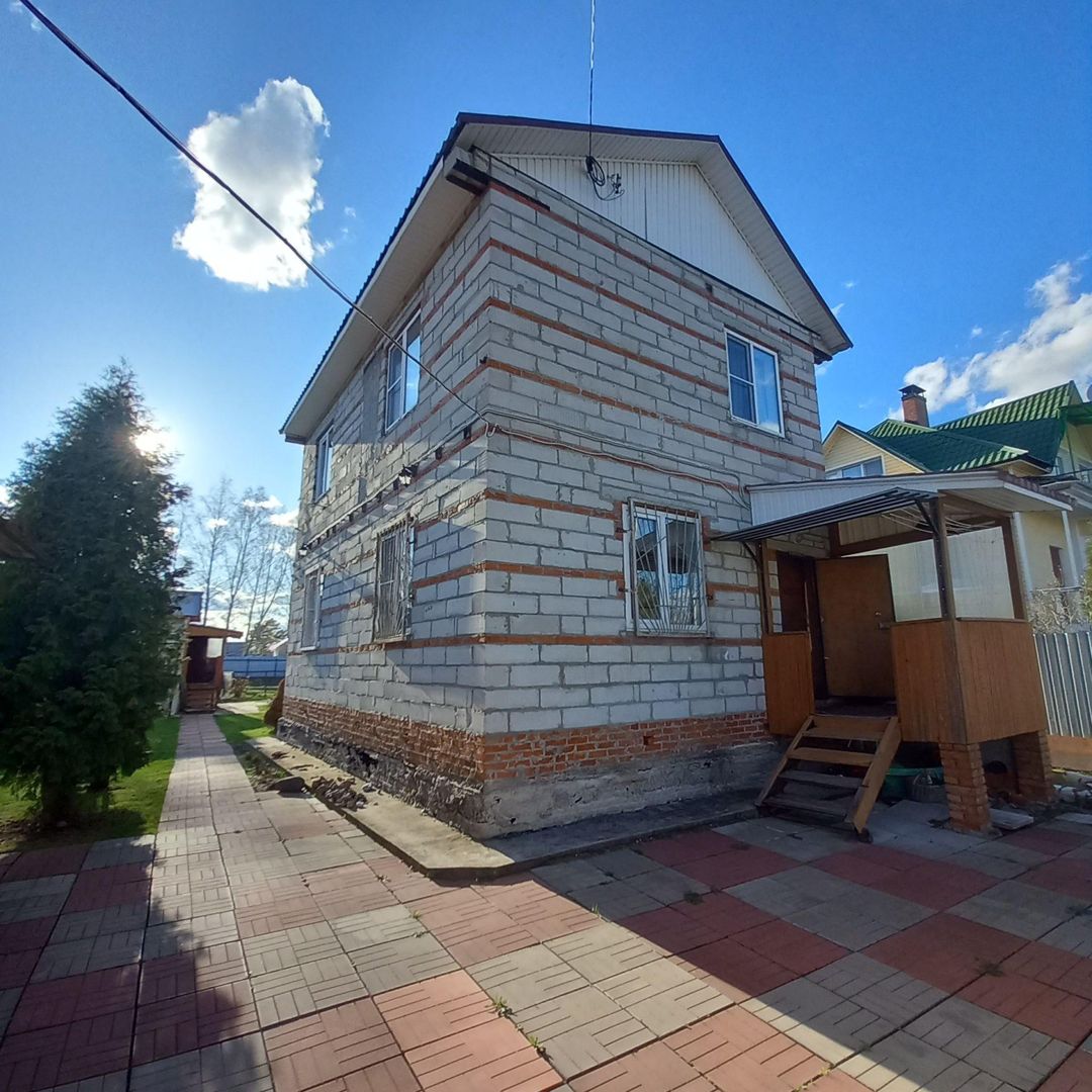 На участке расположен большой, двухэтажный дом 1993 г. постройки из пеноблока на ленточном фундаменте. Утеплен, отапливается печью. Общая площадь дома 94, 3 кв.м, жилая 71, 5 кв.м. В доме стоят качественные стеклопакеты, заведена вода, электричество, газ балонный.