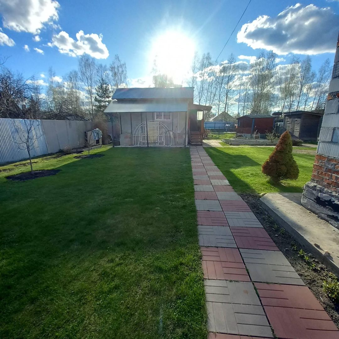Участок 6 соток ровный, сухой, правильной формы, засеян газоном, огорожен со всех сторон забором из проф листа. Есть ворота для въезда авто, парковочные места для трех машин.По всему периметру установлены камеры видеонаблюдения.
