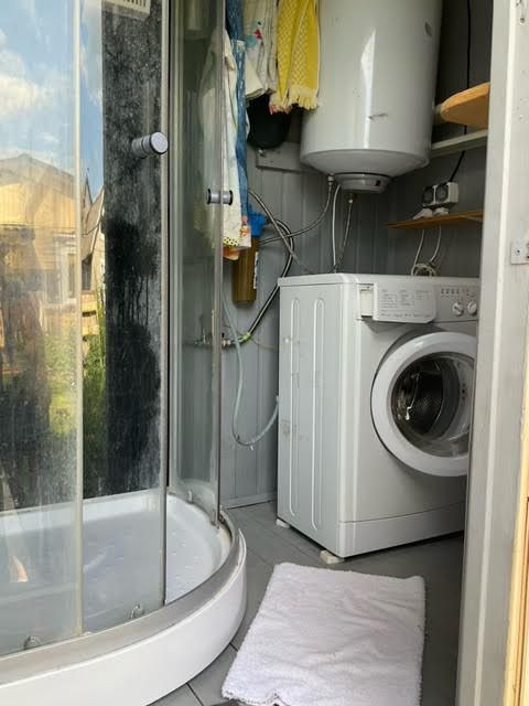 Отдельно домик- душ с бойлером и торфяной туалет + место для хранения инструментов.