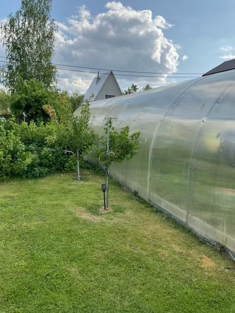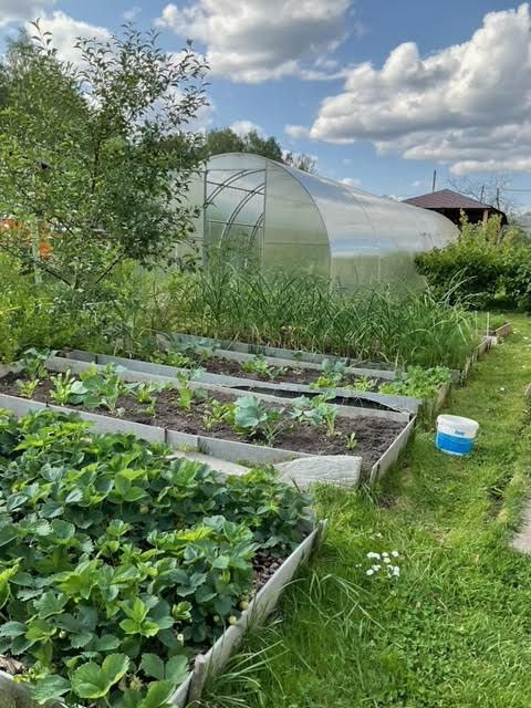 На участке растут: яблони, смородина, крыжовник, малина, клубника, жимолость.