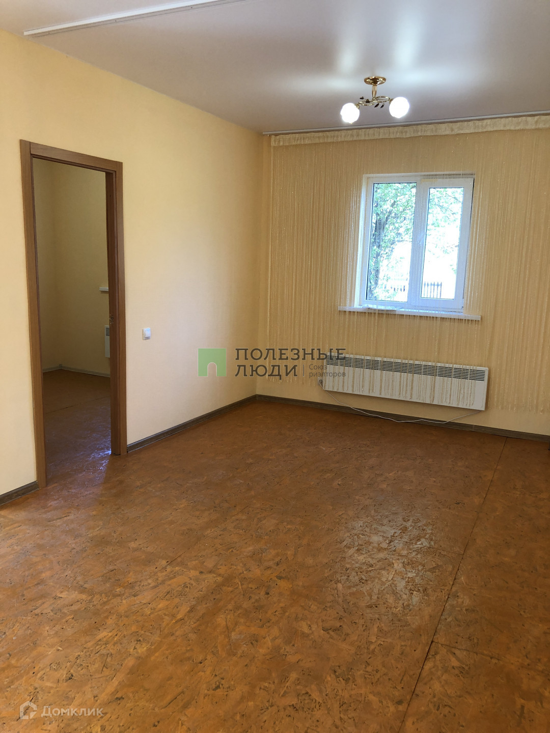 Окна ПВХ, на полу ОСП-окрашен, подготовлен под ламинат или линолеум.
